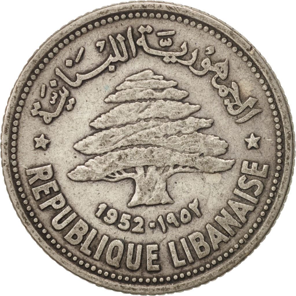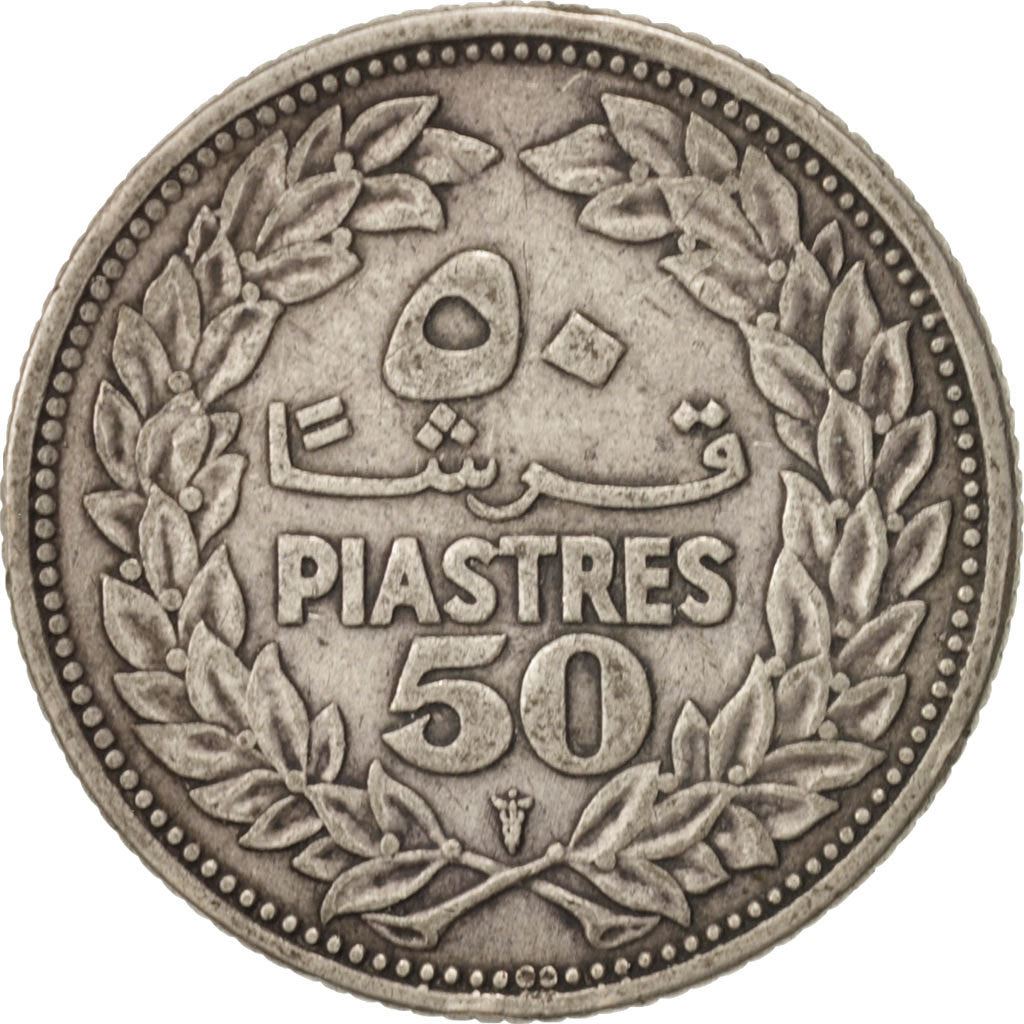 عملة 50 قرشاً / بيسة من لبنان (الجمهورية اللبنانية, ٱلْجُمْهُورِيَّةُ ٱللُّبْنَانِيَّةُ). تم تداول العملة في عام 1952 وسيتم اختيارها عشوائياً. درجات مختلفة من جيد إلى جيد جداً. الصورة لأغراض الإعلان فقط. قد تحتوي العملة على خدوش أو أوساخ أو تلف من الأكسدة.