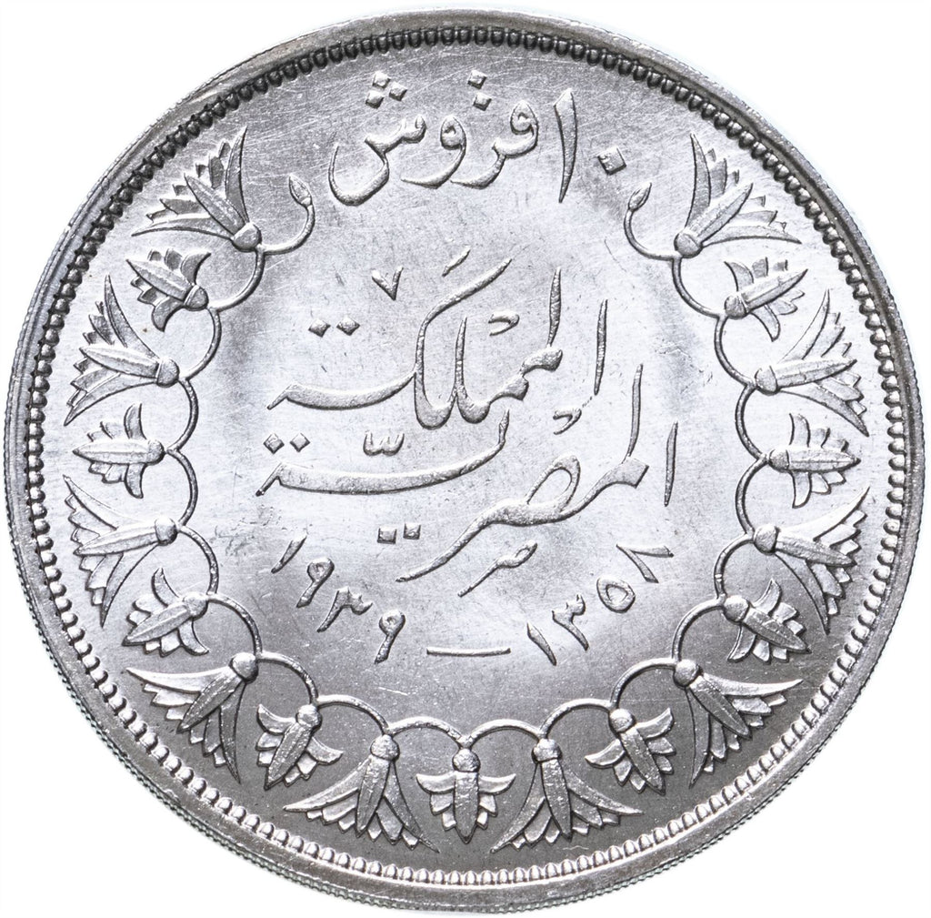 Omvendt tekst: ١٠ قروش المملكة المصرية ١٣٥٨-١٩٣٩