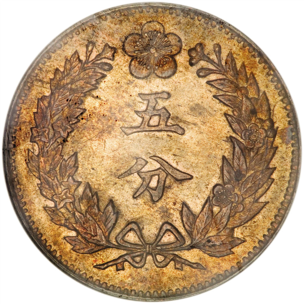 5 Fun Yi Hyong mønt fra Korea (Den Koreanske Halvø, 한국). Mønten var i omløb 1893 - 1896 og vælges tilfældigt. Forskellige grader fra God til Meget fin. Et foto er kun til reklameformål. Mønten kan have ridser, snavs eller skader fra oxidation.
