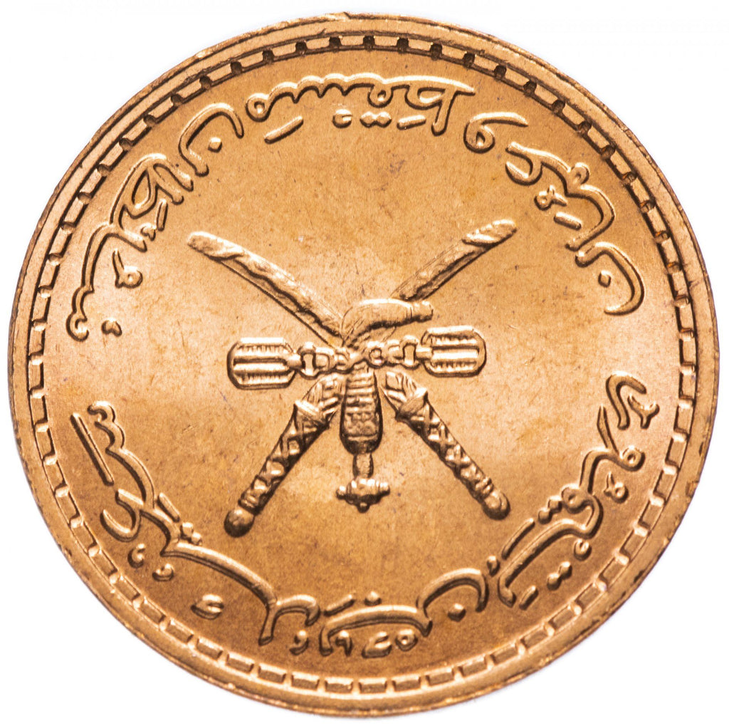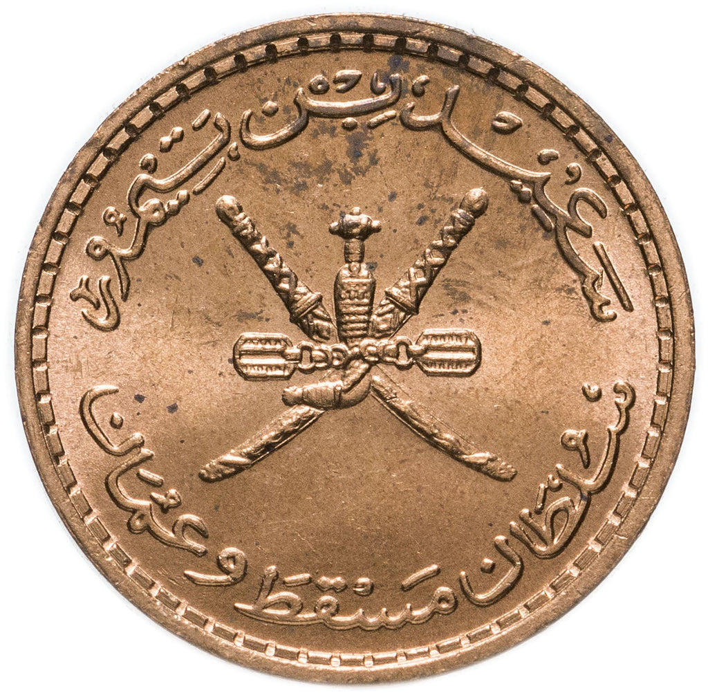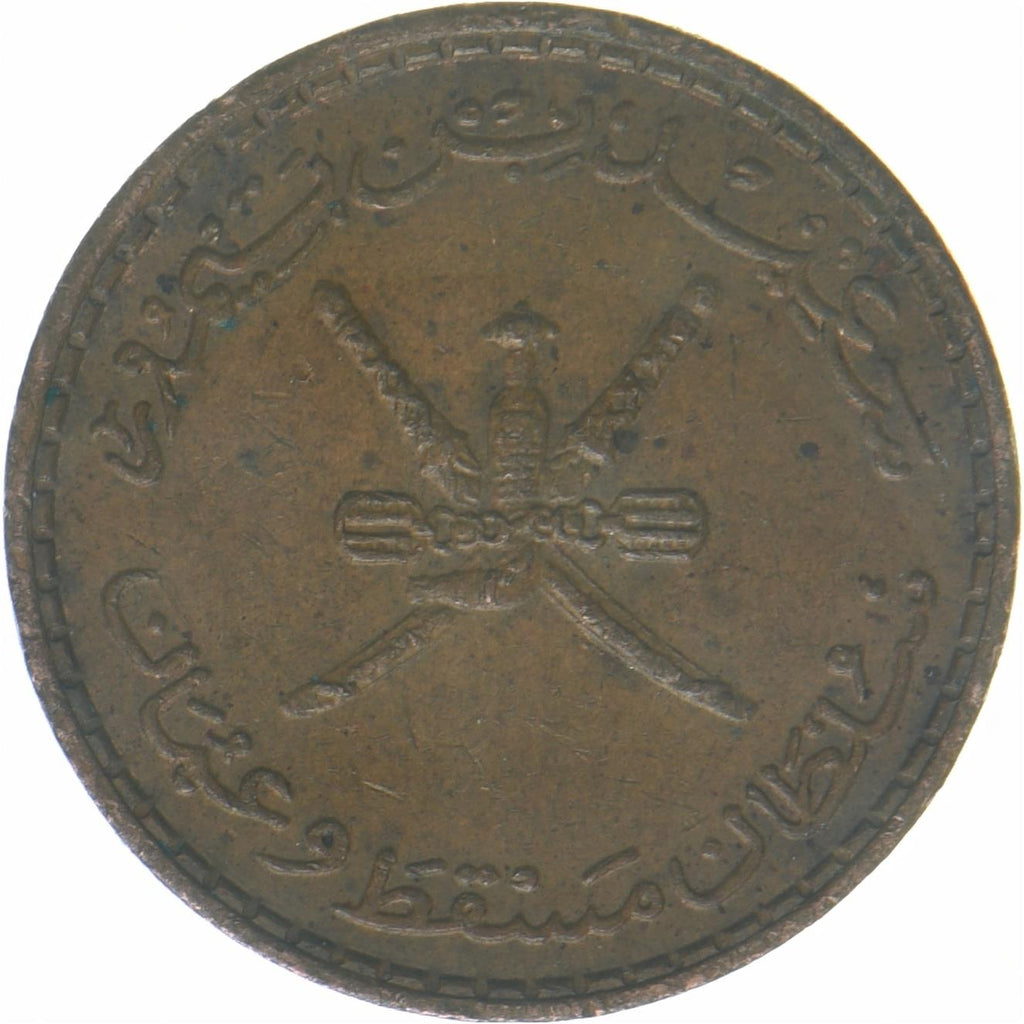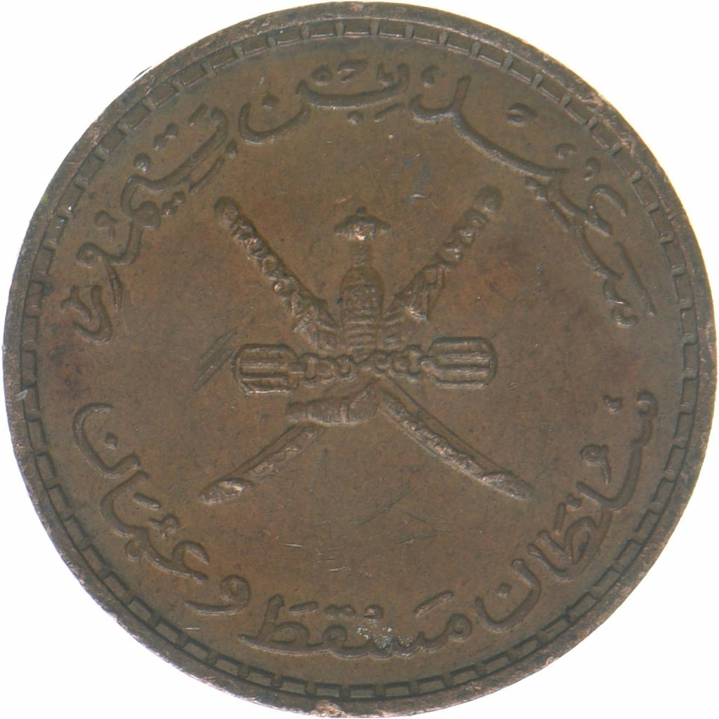 2 Baisa mønt fra Muscat og Oman (Sultanatet Muscat og Oman, سلطنة مسقط وعمان). Mønten blev cirkuleret i 1970 og vil blive udvalgt tilfældigt. Forskellige grader fra God til Meget fin. Et foto er kun til reklameformål. Mønten kan have ridser, snavs eller skader fra oxidation.