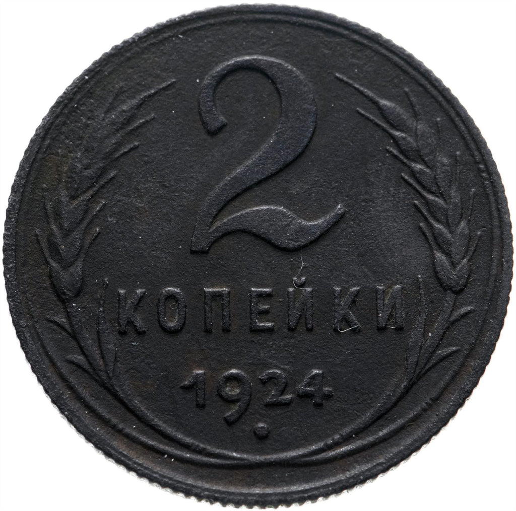 2 Kopeks mønt fra Sovjetunionen (Union of Soviet Socialist Republics, Союз Советских Социалистических Республик). Mønten var i omløb i 1924 - 1925 og vælges tilfældigt. Forskellige grader fra God til Meget fin. Et foto er kun til reklameformål. Mønten kan have ridser, snavs eller skader fra oxidation.