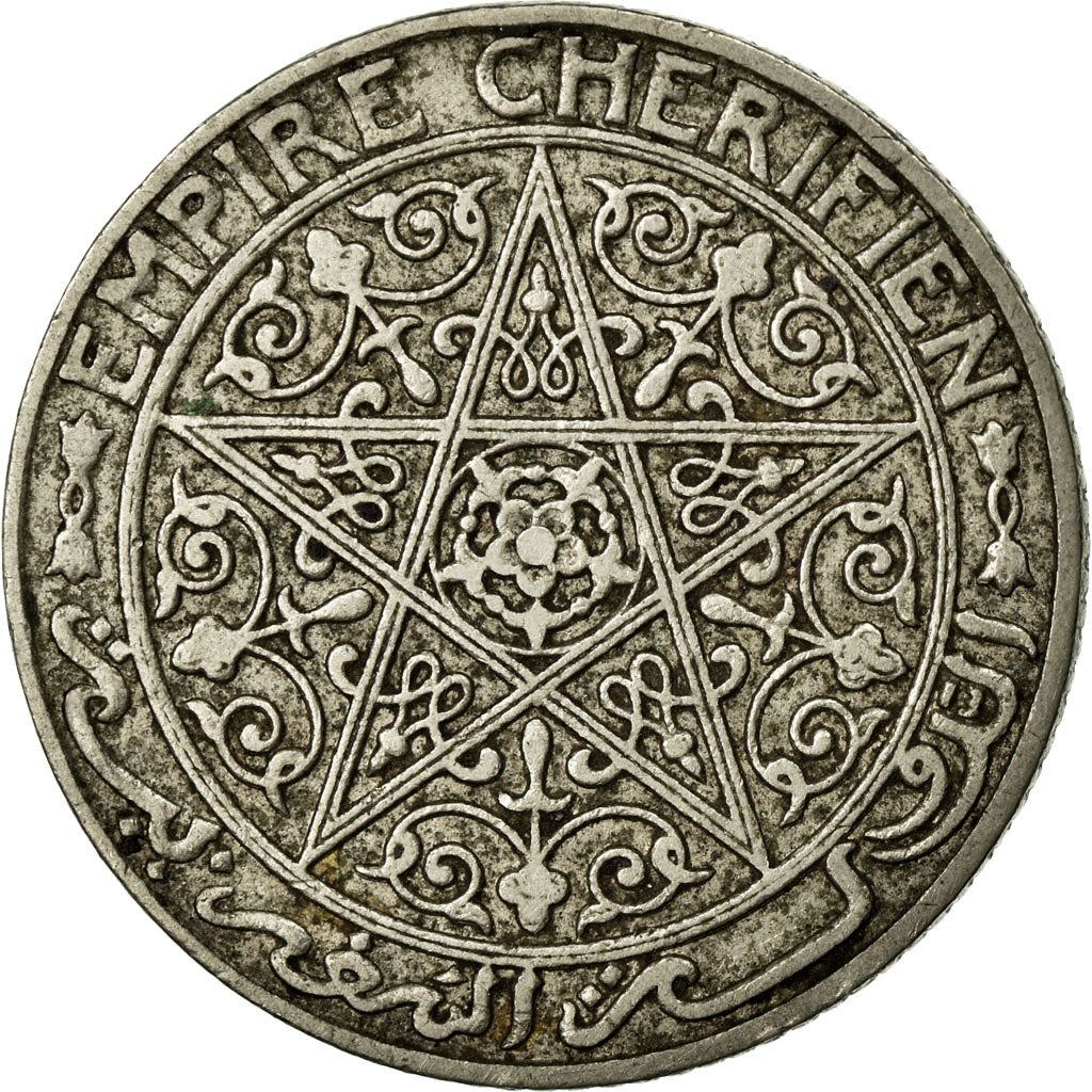 50-Centimes-Münze aus Marokko (Tageldit n Lmeɣrib, al-Mamlakah al-Maghribiyah). Die Münze wurde 1924 ausgegeben und wird zufällig ausgewählt. Verschiedene Erhaltungsgrade von gut bis sehr schön. Das Foto dient nur Werbezwecken. Die Münze kann Kratzer, Schmutz oder Schäden durch Oxidation aufweisen.