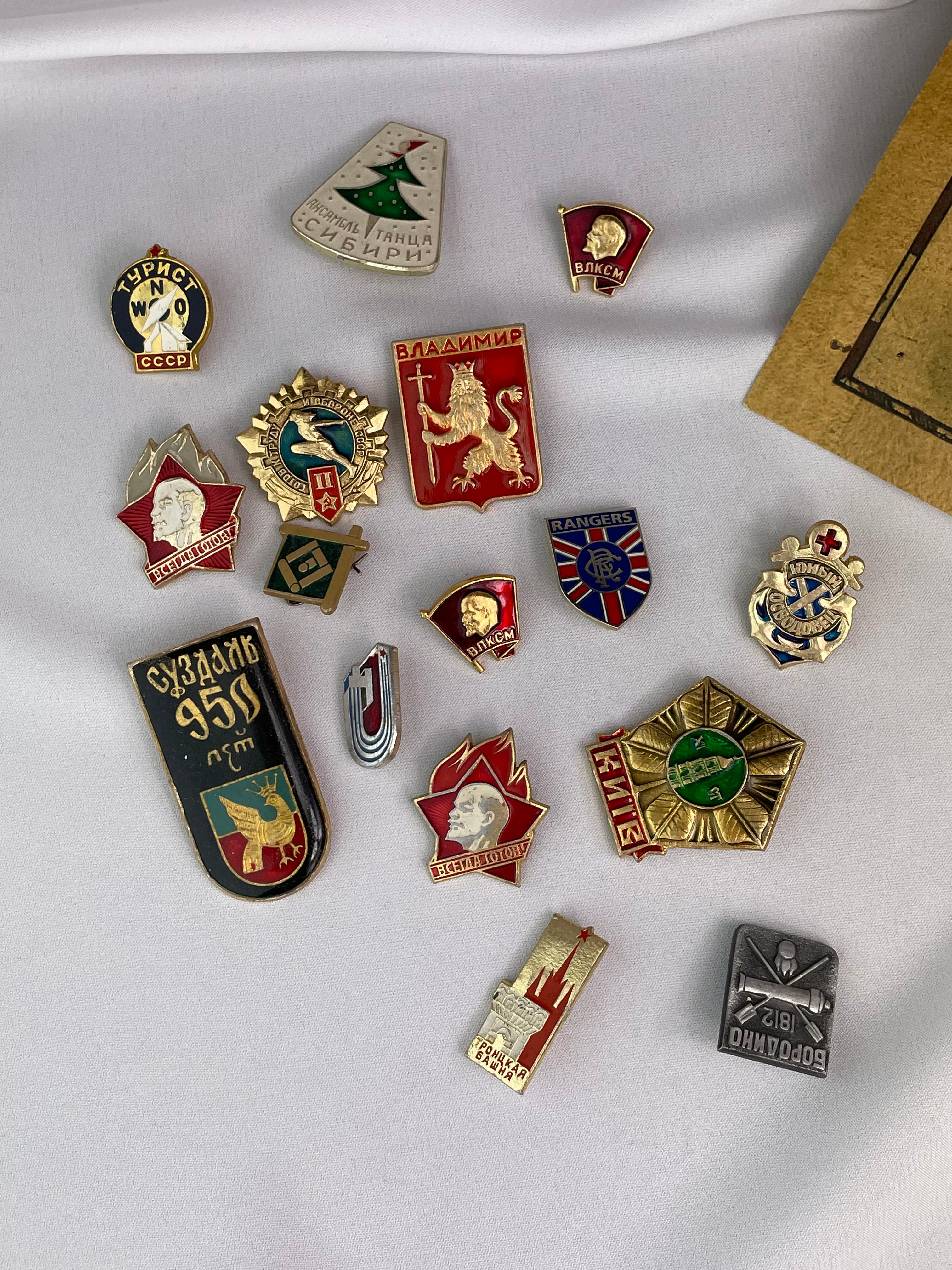 Insignias originales fabricadas en los países comunistas soviéticos y estados satélites durante la Guerra Fría. Se pueden encontrar diversos temas: ejército, deportes, política, festividades, propaganda soviética, Lenin, animales, flora, fauna, niños, turismo, olimpiadas, dibujos animados, ciudades, coches, espacio.