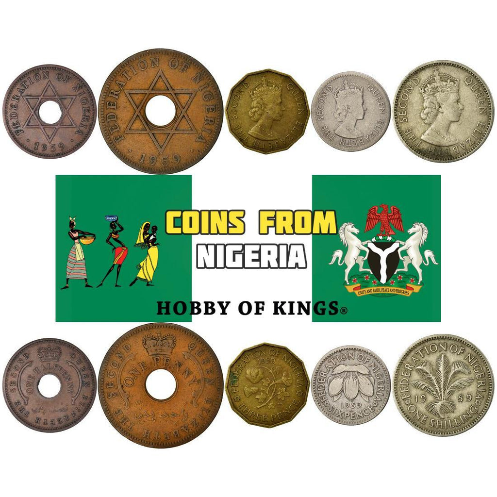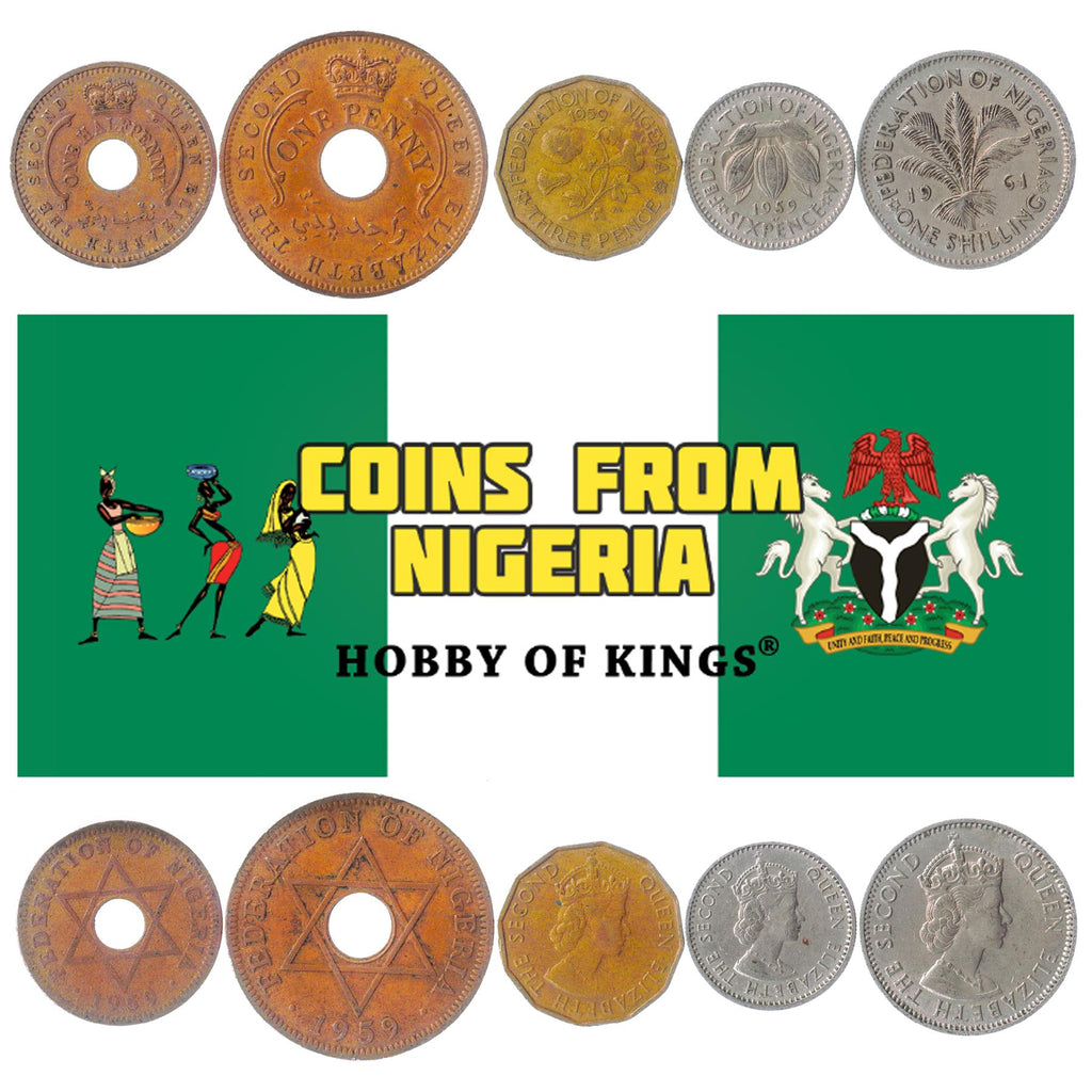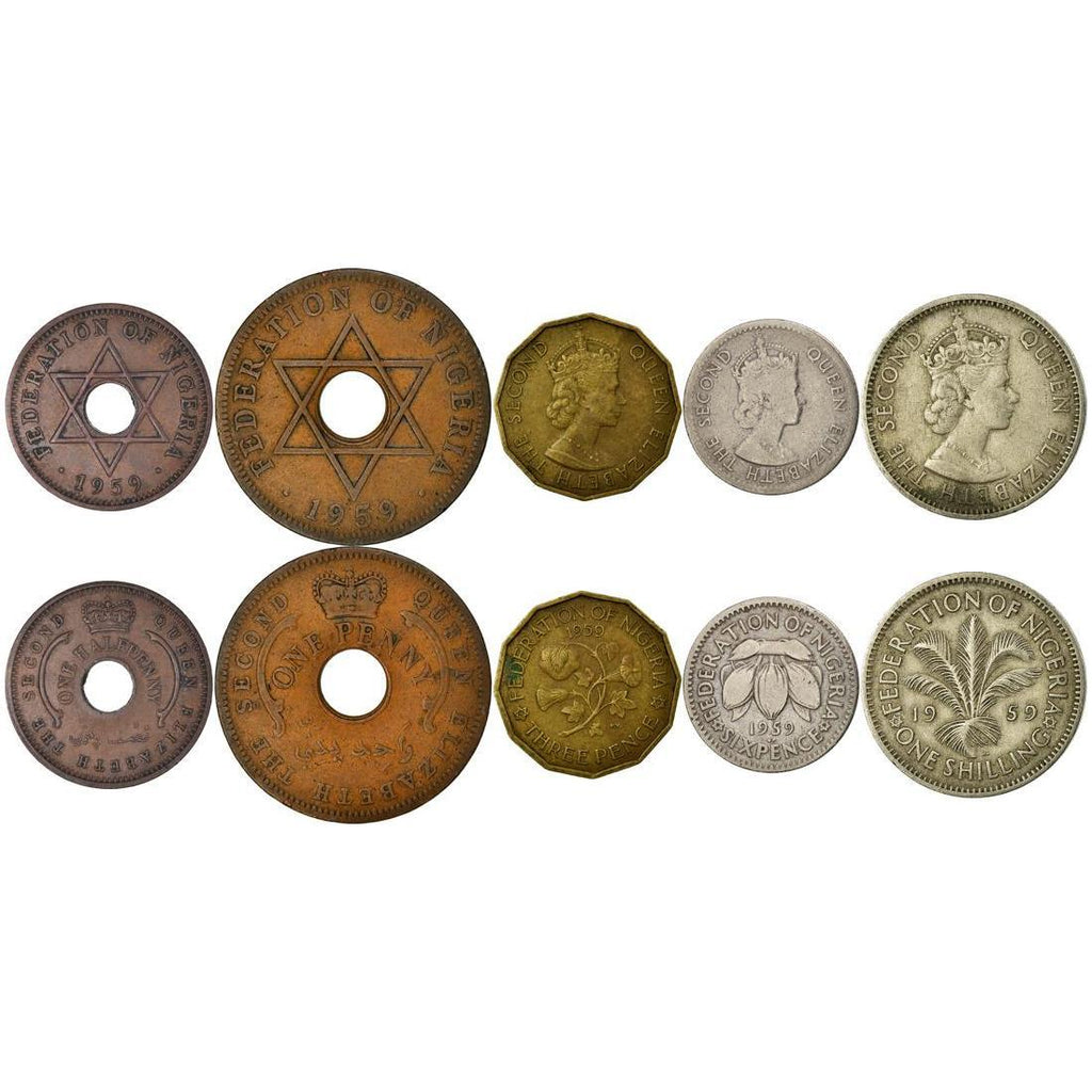 Conjunto de 5 monedas hechas en estos países: Nigeria (Nàìjíríà), Jamhuriyar Tarayyar Najeriya.