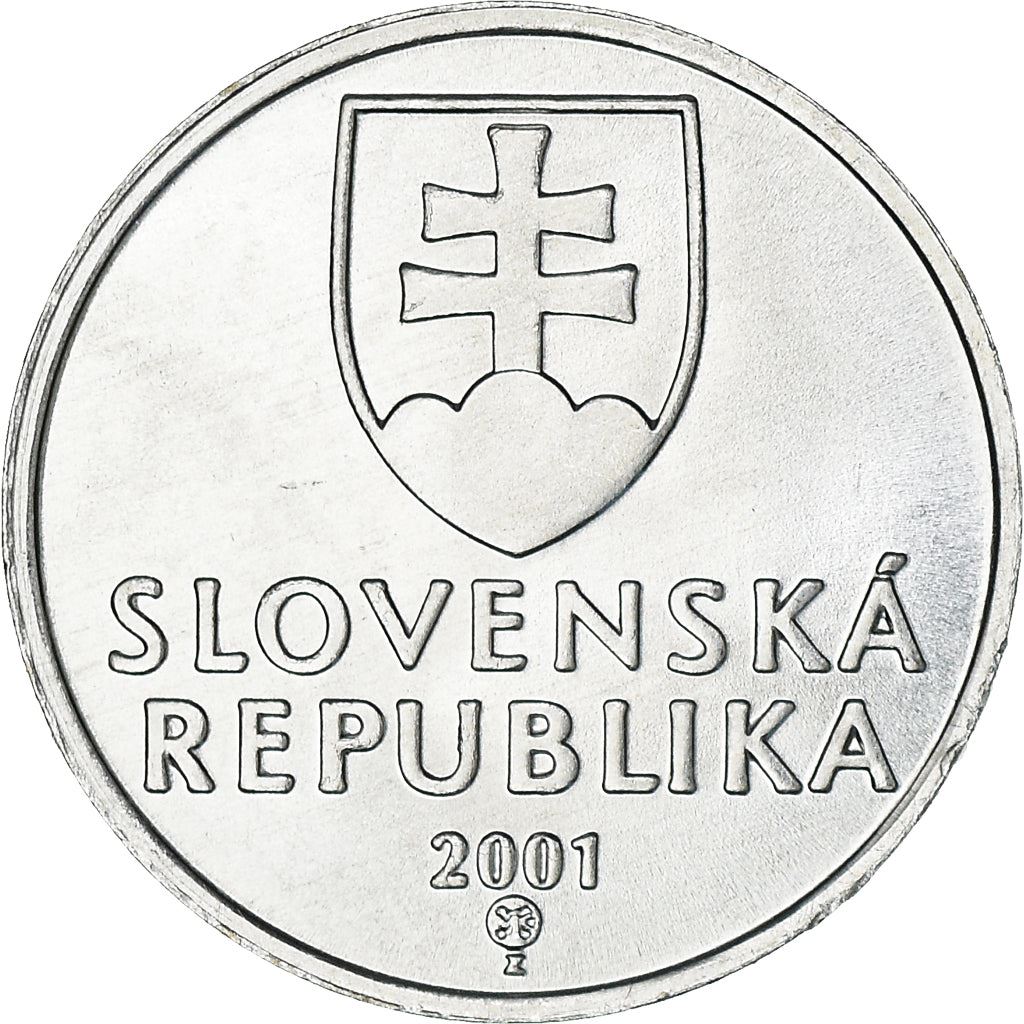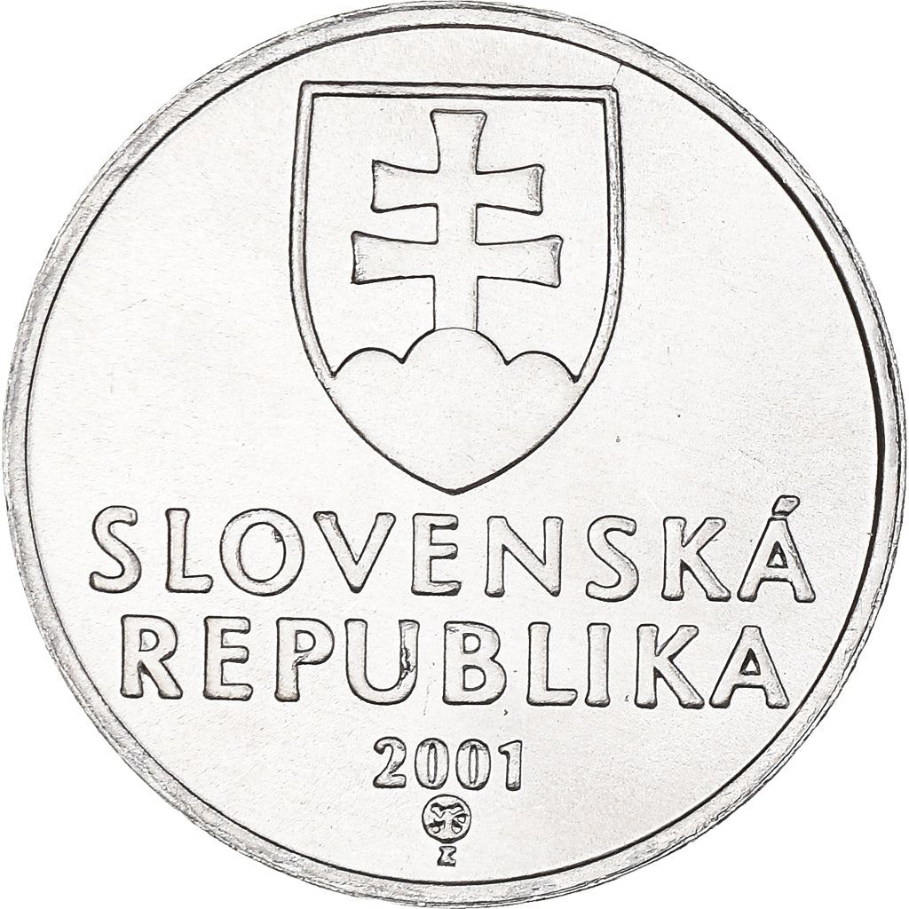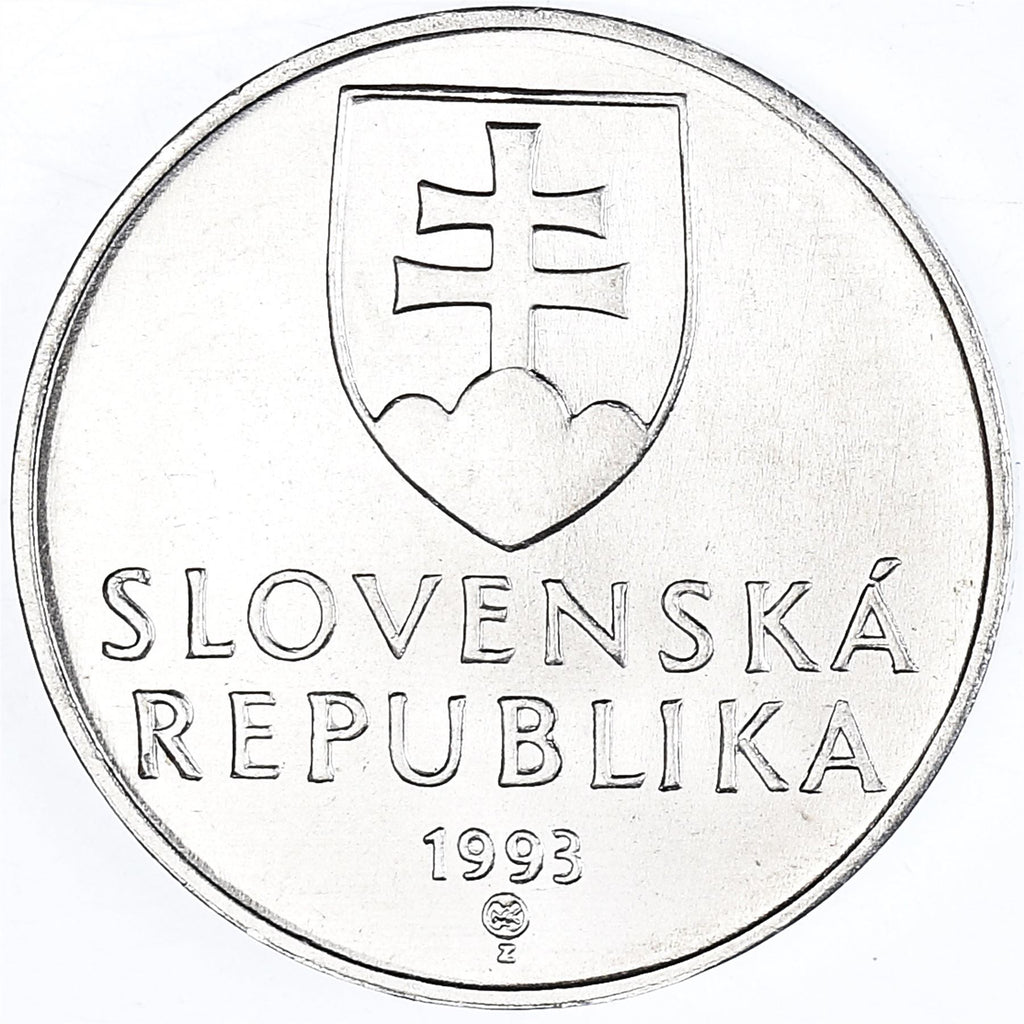 Anverso: Escudo eslovaco sobre el nombre del país, que está sobre la fecha