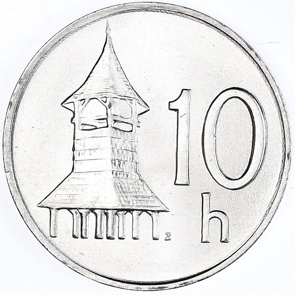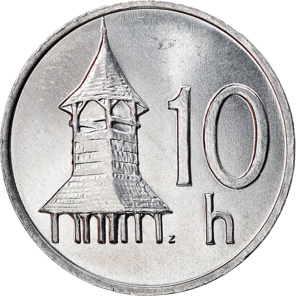 Moneda de 10 Halierov de Eslovaquia (Slovenská republika, República Eslovaca). La moneda estuvo en circulación entre 1993 y 2003 y será seleccionada al azar. Diversas calidades desde Bueno hasta Muy fino. La foto es solo para fines publicitarios. La moneda puede tener rayones, suciedad o daños por oxidación.