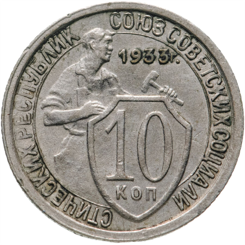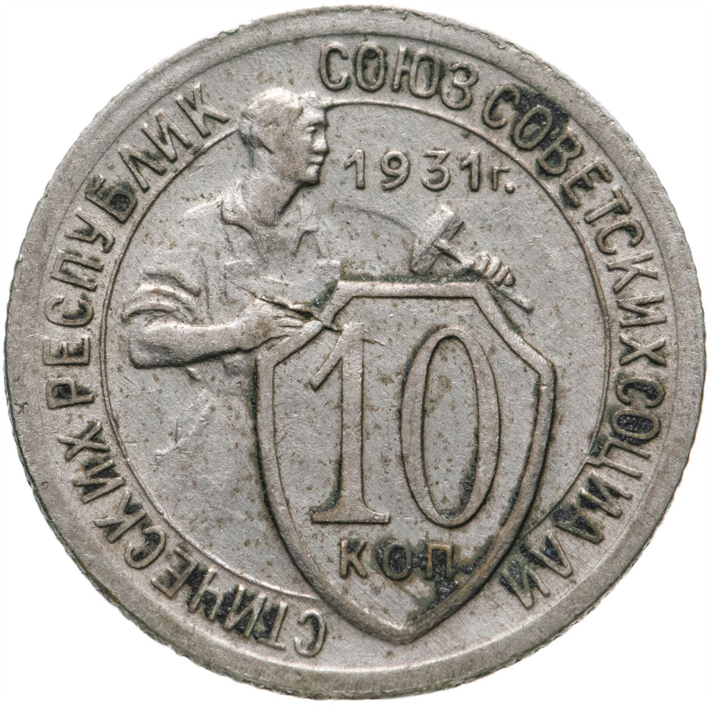 Moneda de 10 Kópecs de la Unión Soviética (Unión de Repúblicas Socialistas Soviéticas, Союз Советских Социалистических Республик). La moneda estuvo en circulación entre 1931 y 1934 y se seleccionará al azar. Diversos estados de conservación desde Bueno hasta Muy fino. La foto es solo para fines publicitarios. La moneda puede tener rayones, suciedad o daños por oxidación.