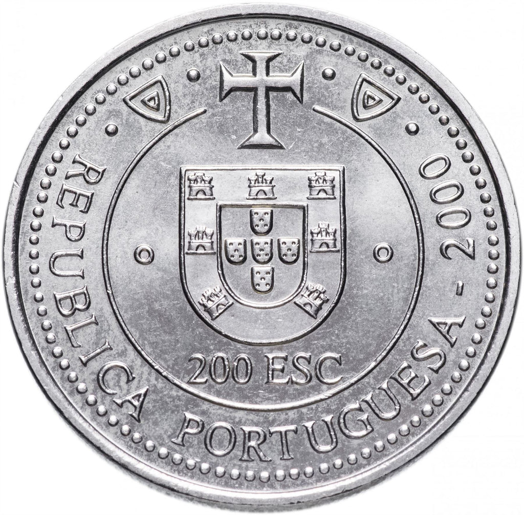 Pièce de 200 Escudos du Portugal (République portugaise, República Portuguesa). La pièce a circulé en 2000 et sera choisie au hasard. Divers états allant de Bon à Très beau. Une photo est fournie à des fins publicitaires uniquement. La pièce peut présenter des rayures, de la saleté ou des dommages dus à l'oxydation.