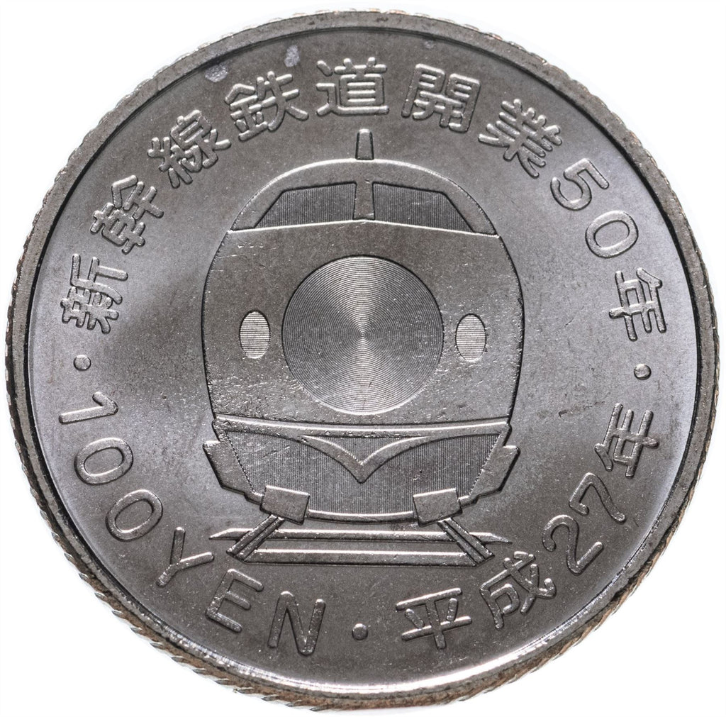 אותיות הפוכות: · 新幹線鉄道開業50年 · 100 YEN · 平成27年