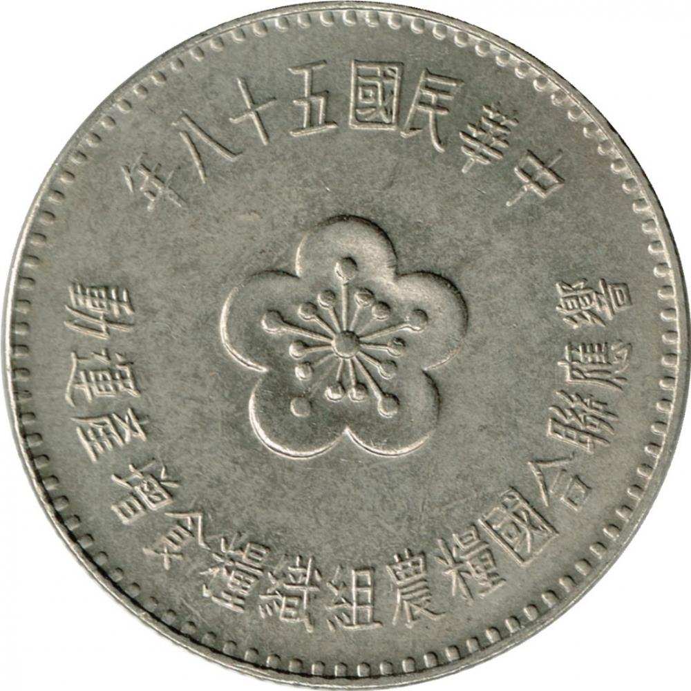 מטבע 1 דולר חדש מטייוואן (רפובליקת סין, Zhōnghuá Mínguó). המטבע הונפק ב-1969 וייבחר באקראי. דרגות שונות מ"טוב" ועד "טוב מאוד". התמונה למטרות פרסום בלבד. המטבע עלול להכיל שריטות, לכלוך או נזק מחמצון.