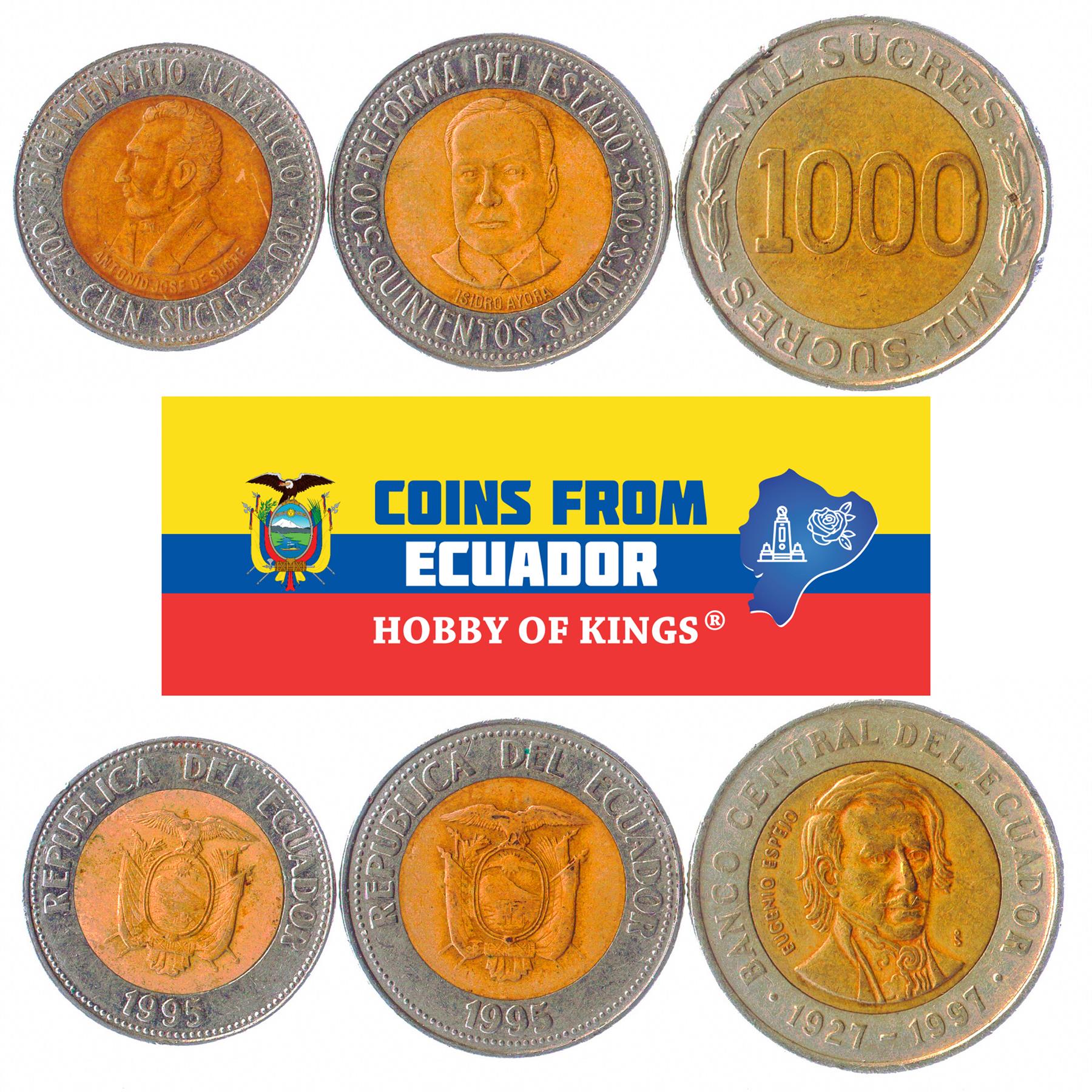सेट 3 सिक्के इक्वाडोर 100 500 1000 स्मारक सुक्रे 1995 - 1997