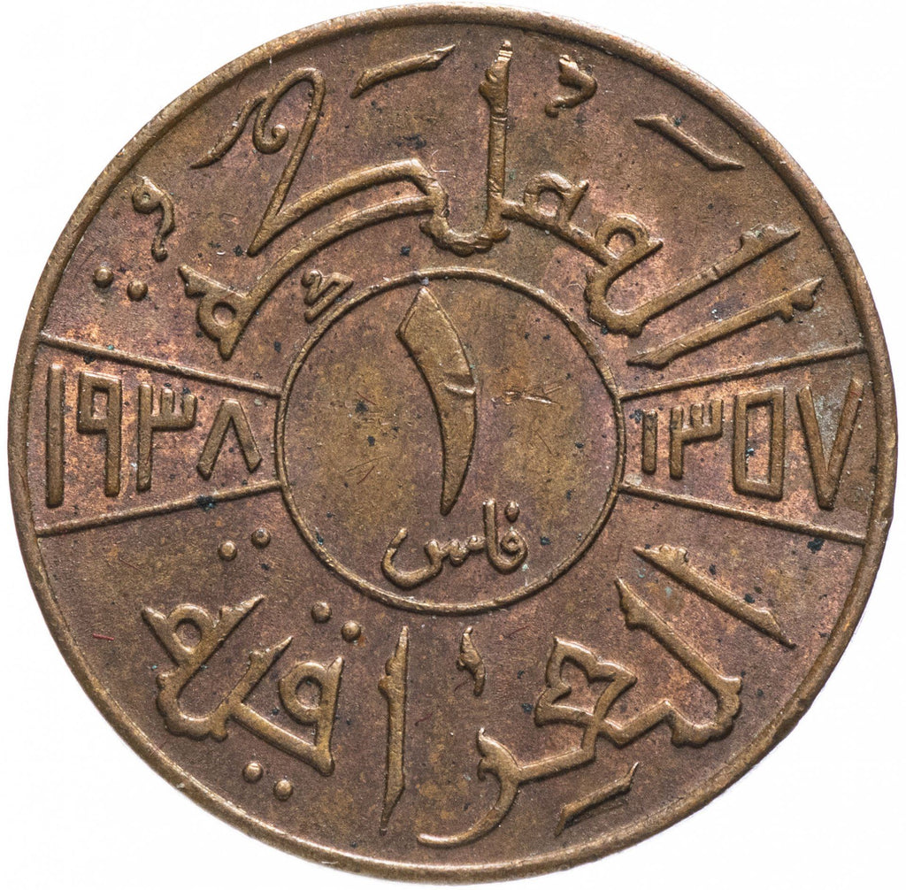 Scritta inversa: المملكة١فلس١٣٥٧ - ١٩٣٨العراقية