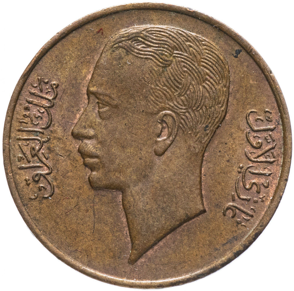 Moneta da 1 Fils dell'Iraq (جُمْهُورِيَّة ٱلْعِرَاق, المملكة العراقية الهاشمية). La moneta è stata in circolazione dal 1936 al 1938 e verrà selezionata casualmente. Varie condizioni da Buona a Molto bella. La foto è solo a scopo pubblicitario. La moneta può presentare graffi, sporco o danni da ossidazione.
