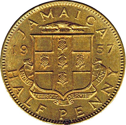 Scritta rovesciata: Jamaica Half Penny 1957 Indus Uterque Serviet Uni