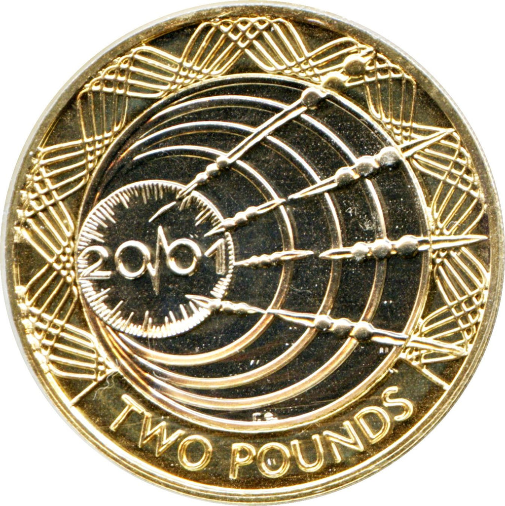 Moneta da 2 Sterline del Regno Unito (Regno Unito di Gran Bretagna e Irlanda del Nord, Gran Bretagna). La moneta è stata coniata nel 2001 e sarà selezionata casualmente. Varie condizioni da Buono a Molto bello. La foto è solo a scopo pubblicitario. La moneta può presentare graffi, sporco o danni da ossidazione.