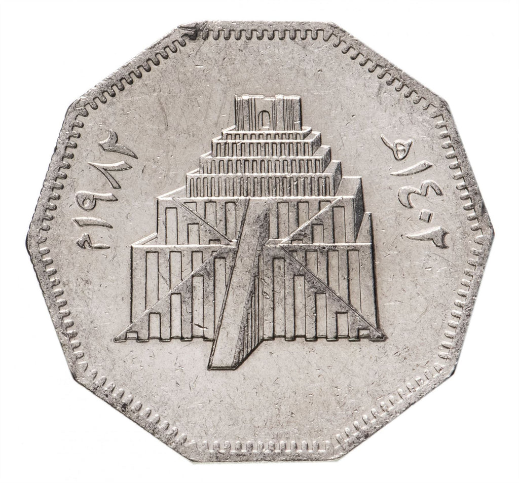 イラク(イラク共和国、جمهورية العراق)の1ディナール硬貨。1982年に流通し、ランダムに選ばれます。状態は良好から非常に良好まで様々です。写真は広告目的のみです。硬貨には傷、汚れ、または酸化による損傷がある場合があります。