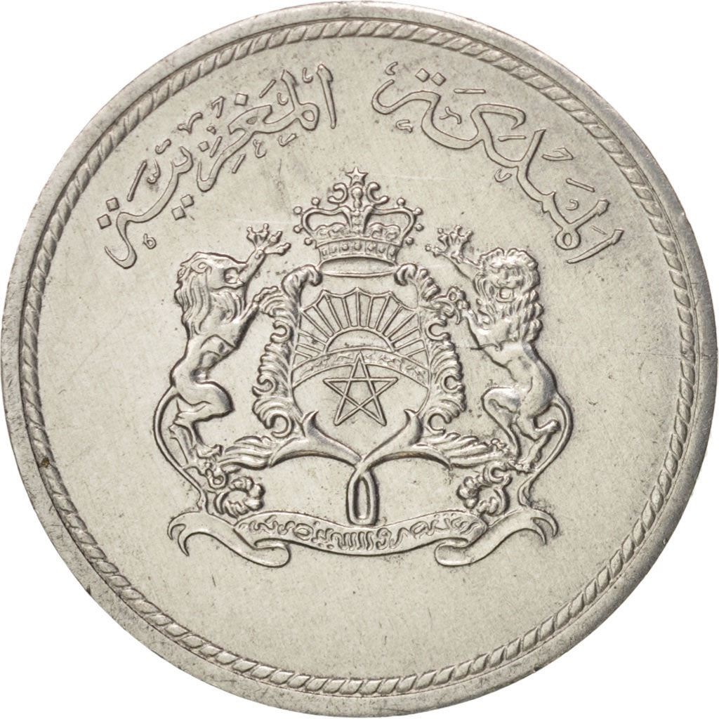 モロッコの1サンティム硬貨(Tageldit n Lmeɣrib, al-Mamlakah al-Maghribiyah)。1974年に流通し、ランダムに選ばれます。状態は良好から非常に良好まで様々です。写真は広告目的のみです。硬貨には傷、汚れ、または酸化による損傷がある場合があります。