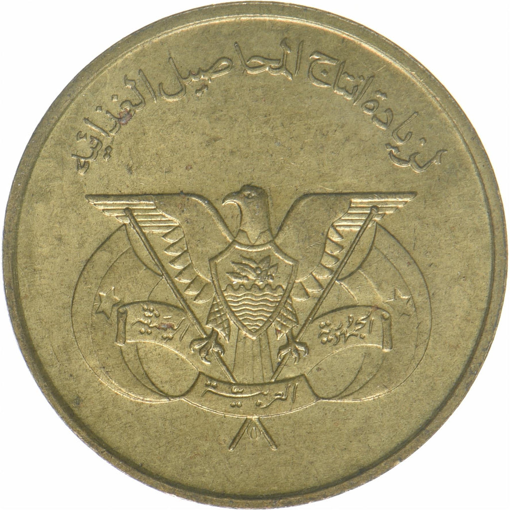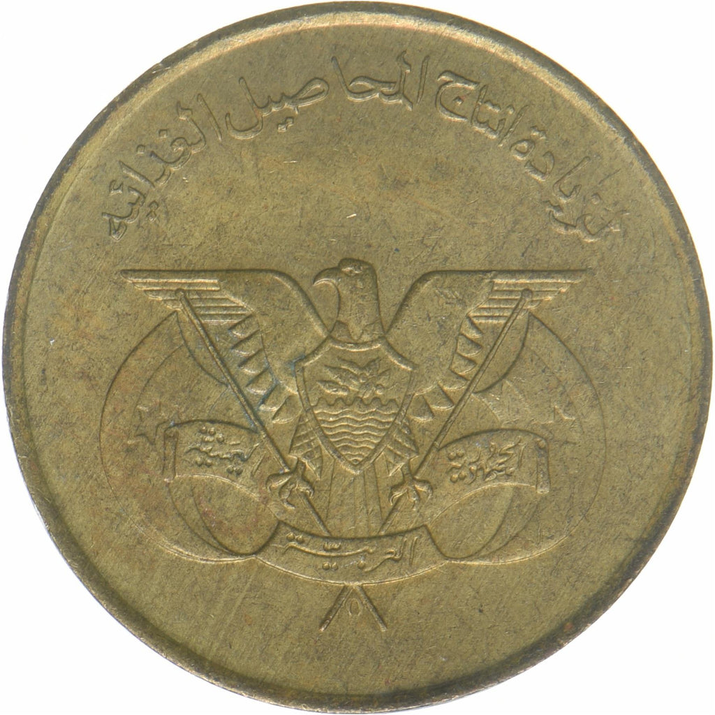 北イエメン(イエメンアラブ共和国、イエメン)の5フィルス硬貨。1974年に流通し、ランダムに選ばれます。状態は良から非常に良まで様々です。写真は広告目的のみです。硬貨には傷、汚れ、または酸化による損傷がある場合があります。