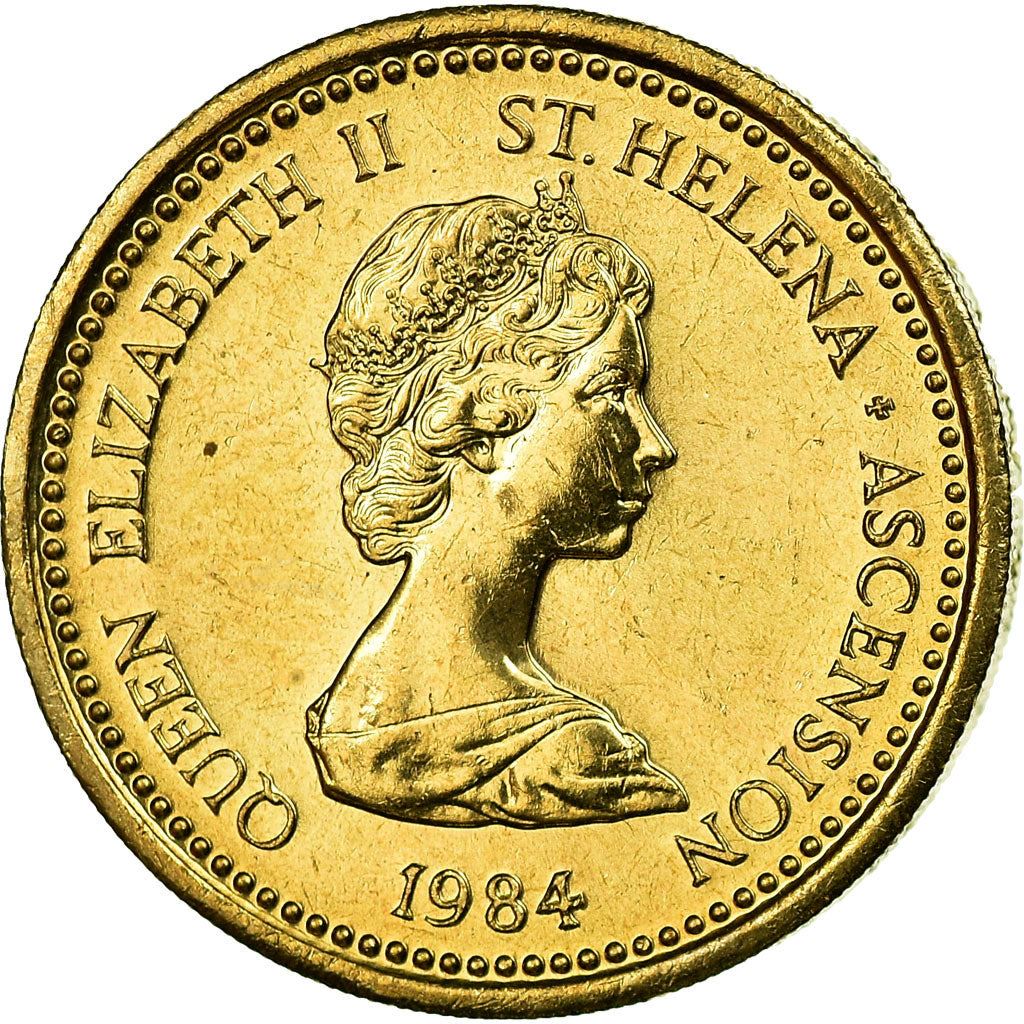 セントヘレナ・アセンション(英国海外領土)発行の1ポンド硬貨。1984年に流通した硬貨で、ランダムに選ばれます。状態はグッドからベリーファインまで様々です。写真は広告用です。硬貨には傷、汚れ、または酸化によるダメージがある場合があります。