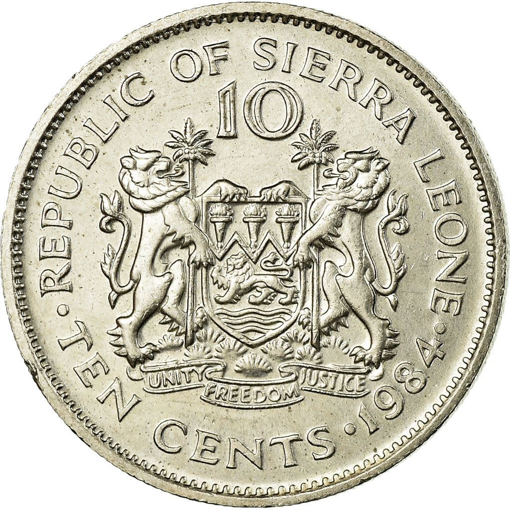 앞면 글자: 시에라리온 공화국 10 • 십 센트 • 1984 •