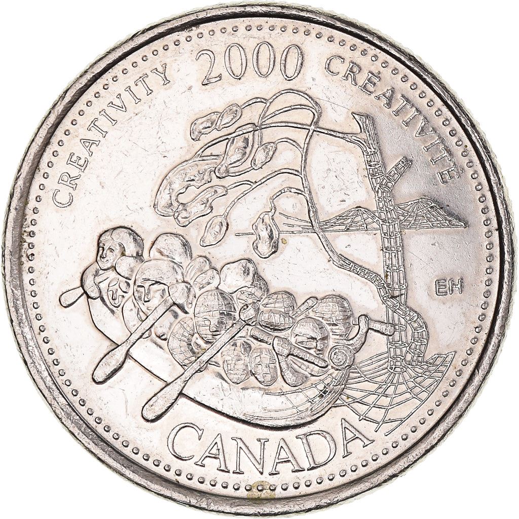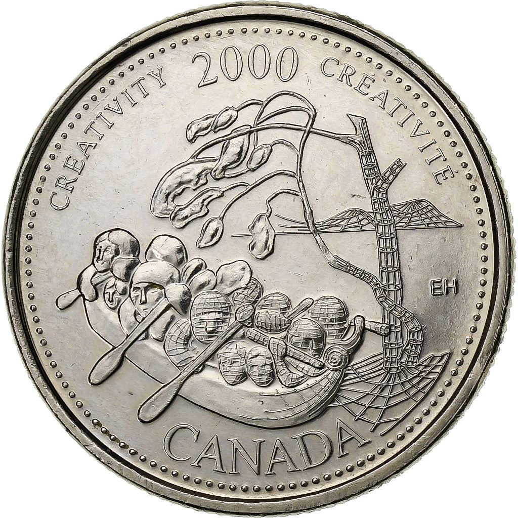 25 centų moneta iš Kanados (Kanada). Moneta buvo apyvartoje 2000 metais ir bus atrinkta atsitiktinai. Įvairūs būklės laipsniai nuo geros iki labai geros. Nuotrauka skirta tik reklamos tikslams. Monetoje gali būti įbrėžimų, nešvarumų ar oksidacijos pažeidimų.