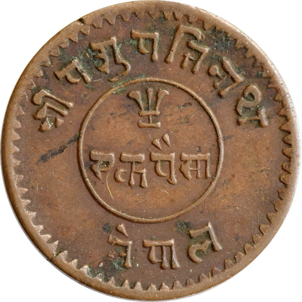 Achterzijde letters: श्री पशुपतिनाथ एक पैसा नेपाल