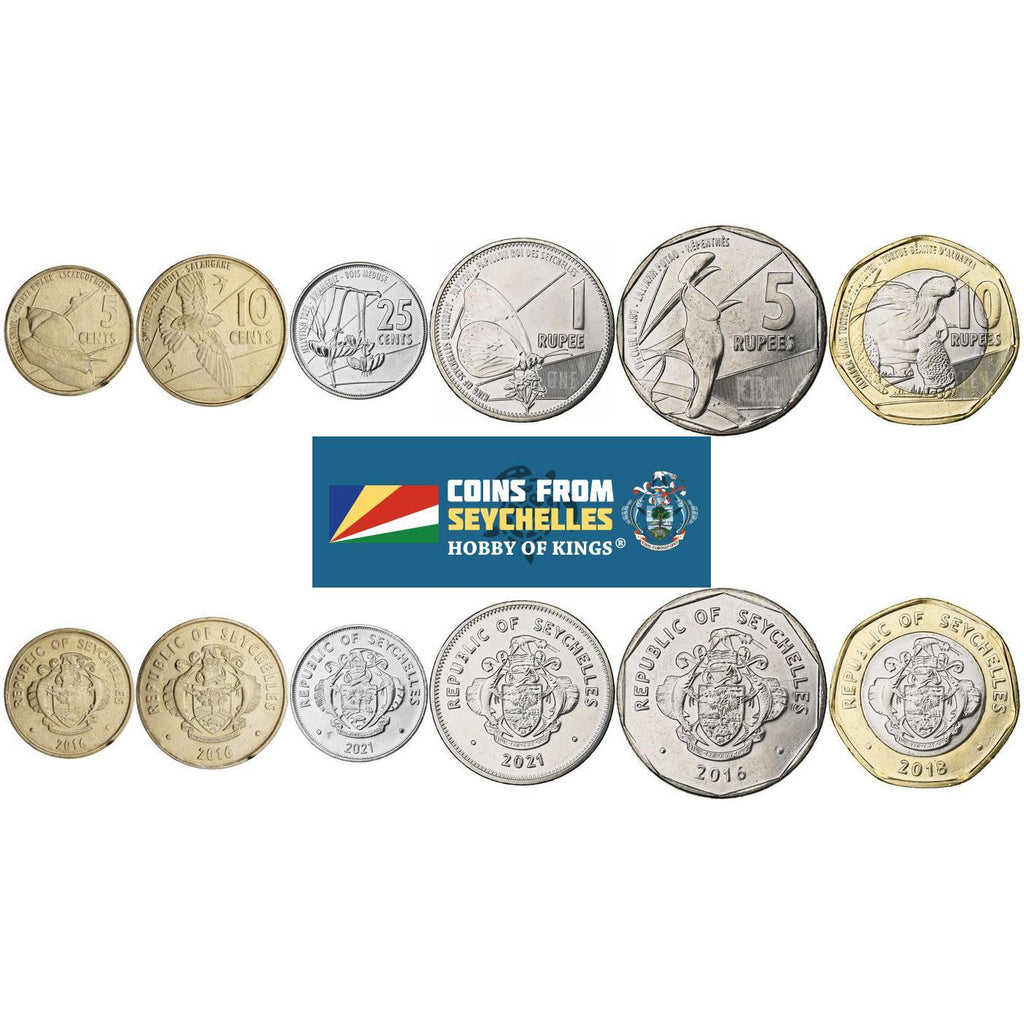 6-muntsset gemaakt in deze landen: Seychellen (Republiek Seychellen), République des Seychelles.