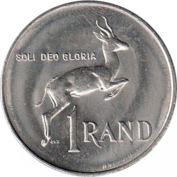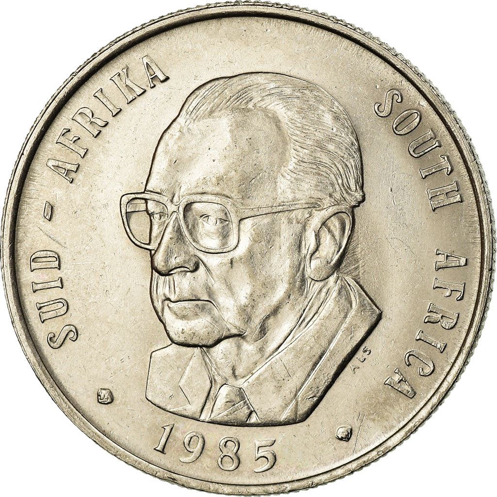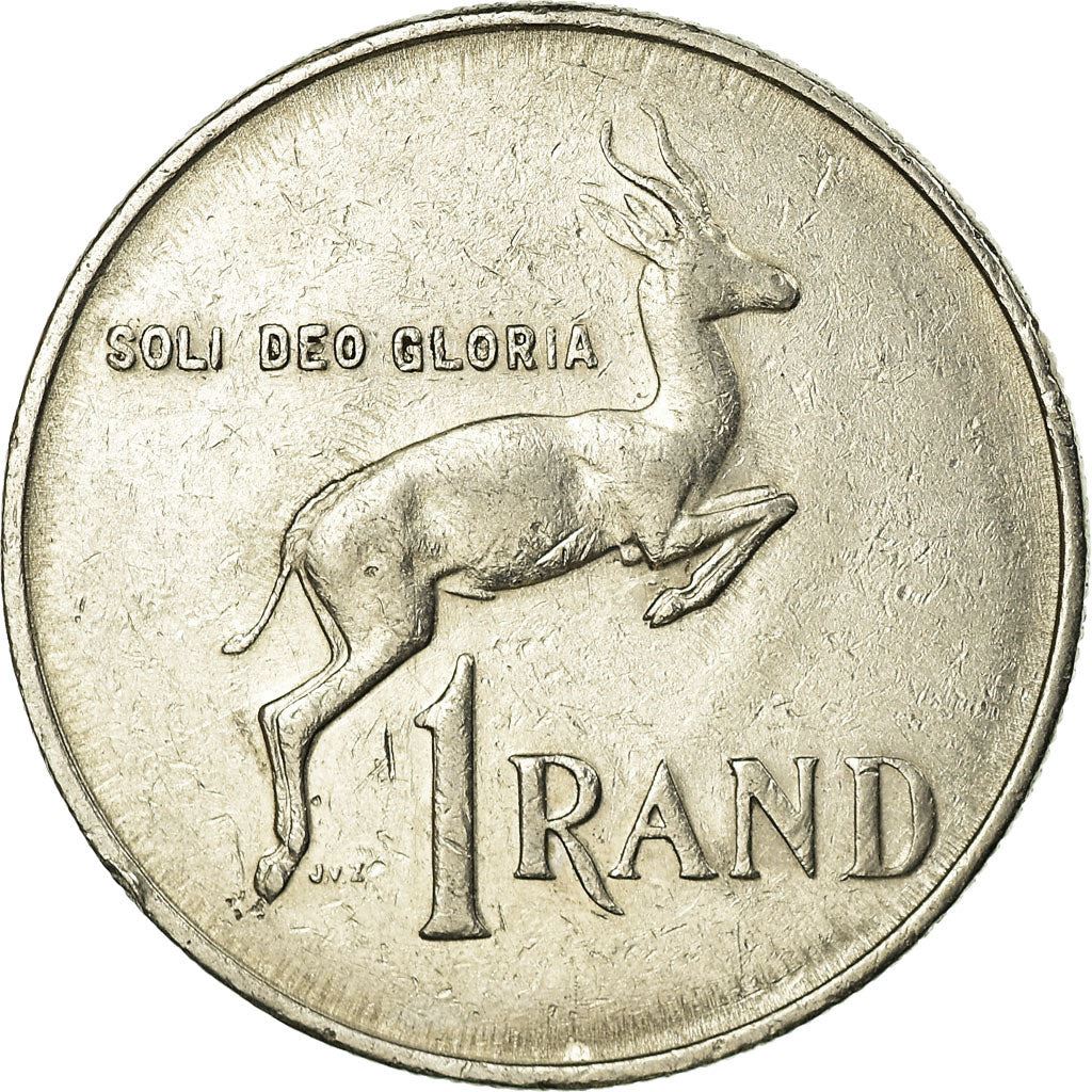 1 Rand munt uit Zuid-Afrika (Republiek Zuid-Afrika, Republiek van Suid-Afrika). De munt werd in 1985 in omloop gebracht en wordt willekeurig gekozen. Verschillende kwaliteiten van Goed tot Zeer Fraai. Een foto is alleen voor reclamedoeleinden. De munt kan krassen, vuil of schade door oxidatie hebben.