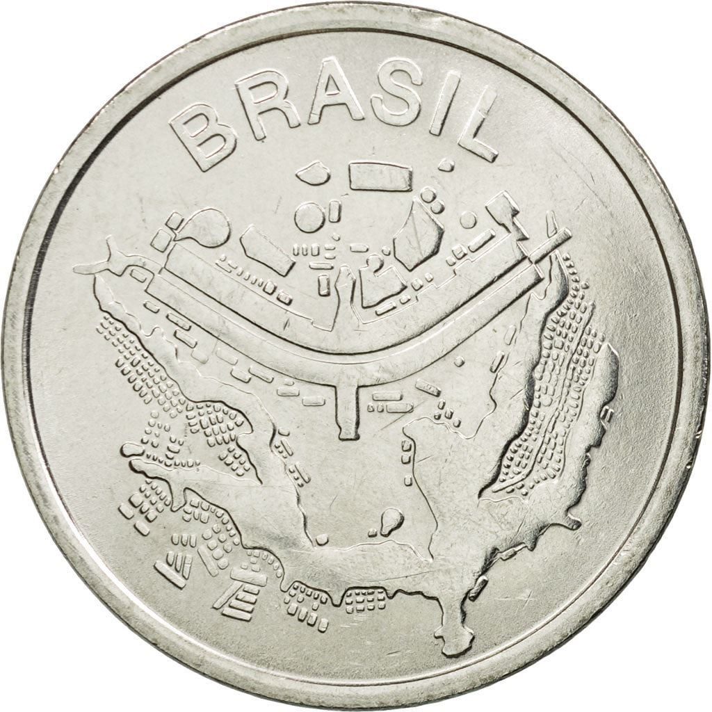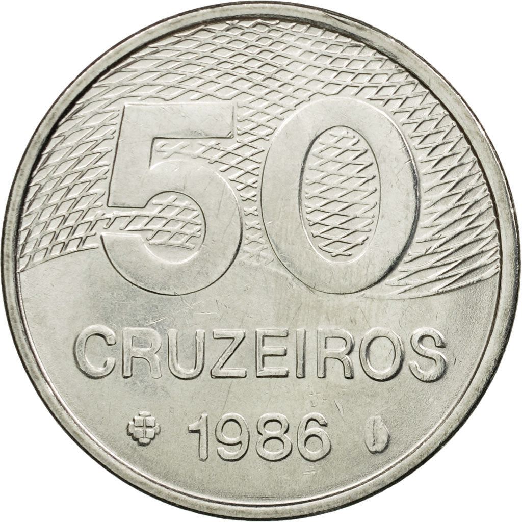 50 Cruzeiros mynt fra Brasil (República Federativa do Brasil, República Federativa do Brasil). Mynten var i omløp 1981 - 1986 og velges tilfeldig. Ulike grader fra God til Meget fin. Et bilde er kun for reklameformål. Mynten kan ha riper, smuss eller skade fra oksidasjon.