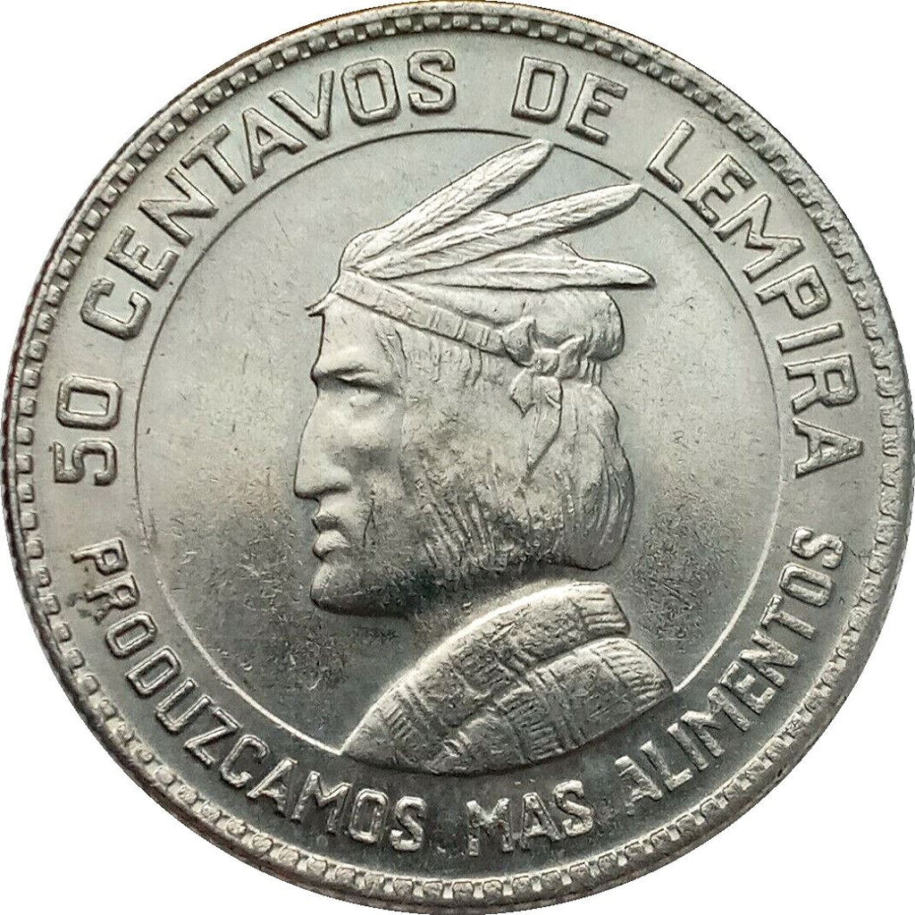 50 Centavos mynt fra Honduras (Republikken Honduras, República de Honduras). Mynten ble sirkulert i 1973 og vil bli valgt tilfeldig. Ulike grader fra God til Meget fin. Et bilde er kun for reklameformål. Mynten kan ha riper, smuss eller skade fra oksidasjon.