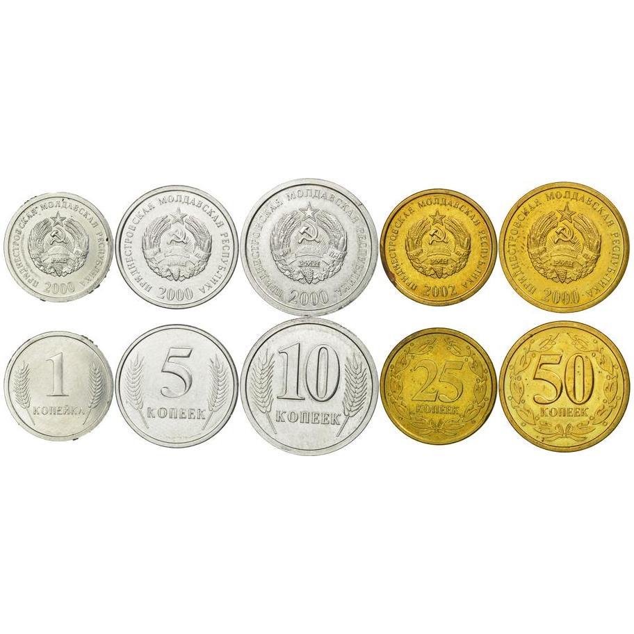 Zestaw 5 monet wyprodukowany w tych krajach: Naddniestrze (Naddniestrzańska Republika Mołdawska).