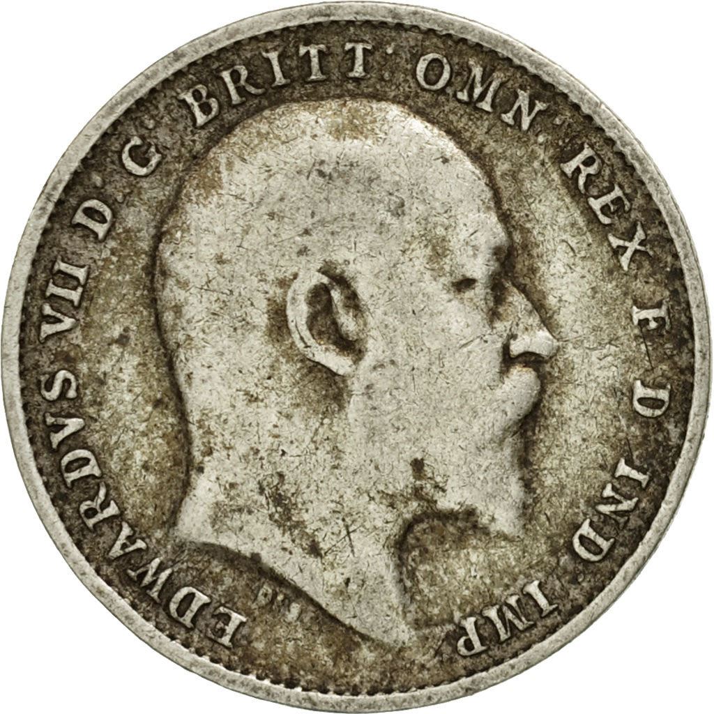 Moneta 3 pensy z Zjednoczonego Królestwa (Wielka Brytania, Zjednoczone Królestwo Wielkiej Brytanii i Irlandii Północnej). Moneta była w obiegu w latach 1902 - 1910 i zostanie wybrana losowo. Różne stany zachowania od Dobrego do Bardzo dobrego. Zdjęcie ma charakter reklamowy. Moneta może mieć rysy, zabrudzenia lub uszkodzenia spowodowane oksydacją.