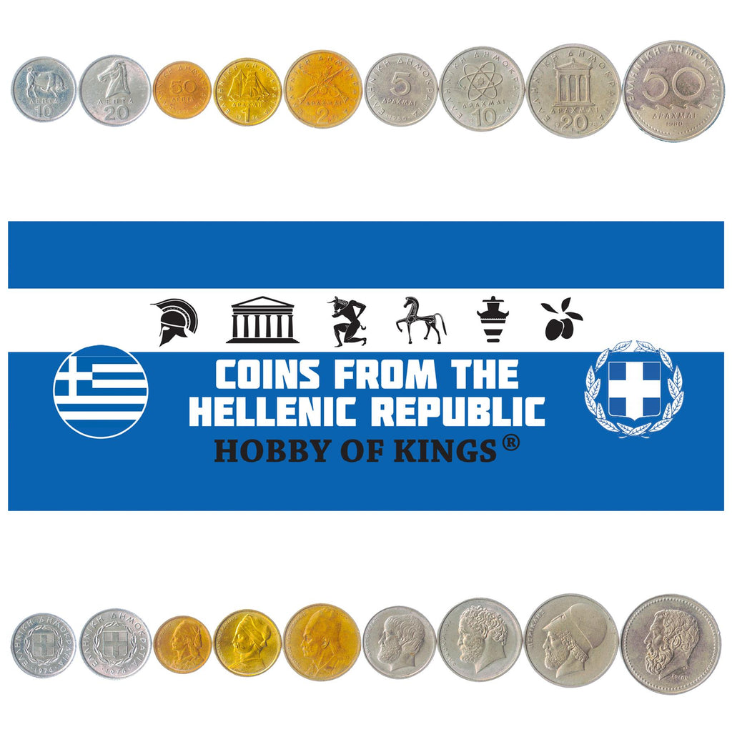 9 coin set made in these countries: Greece (Third Hellenic Republic), Ελληνική Δημοκρατία.