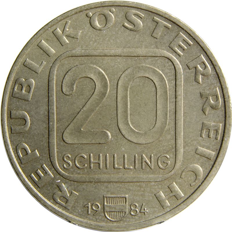 Obverse lettering: Republik Österreich20 Schilling19 84
