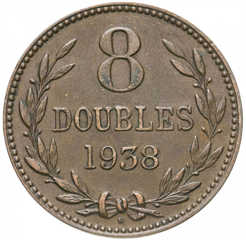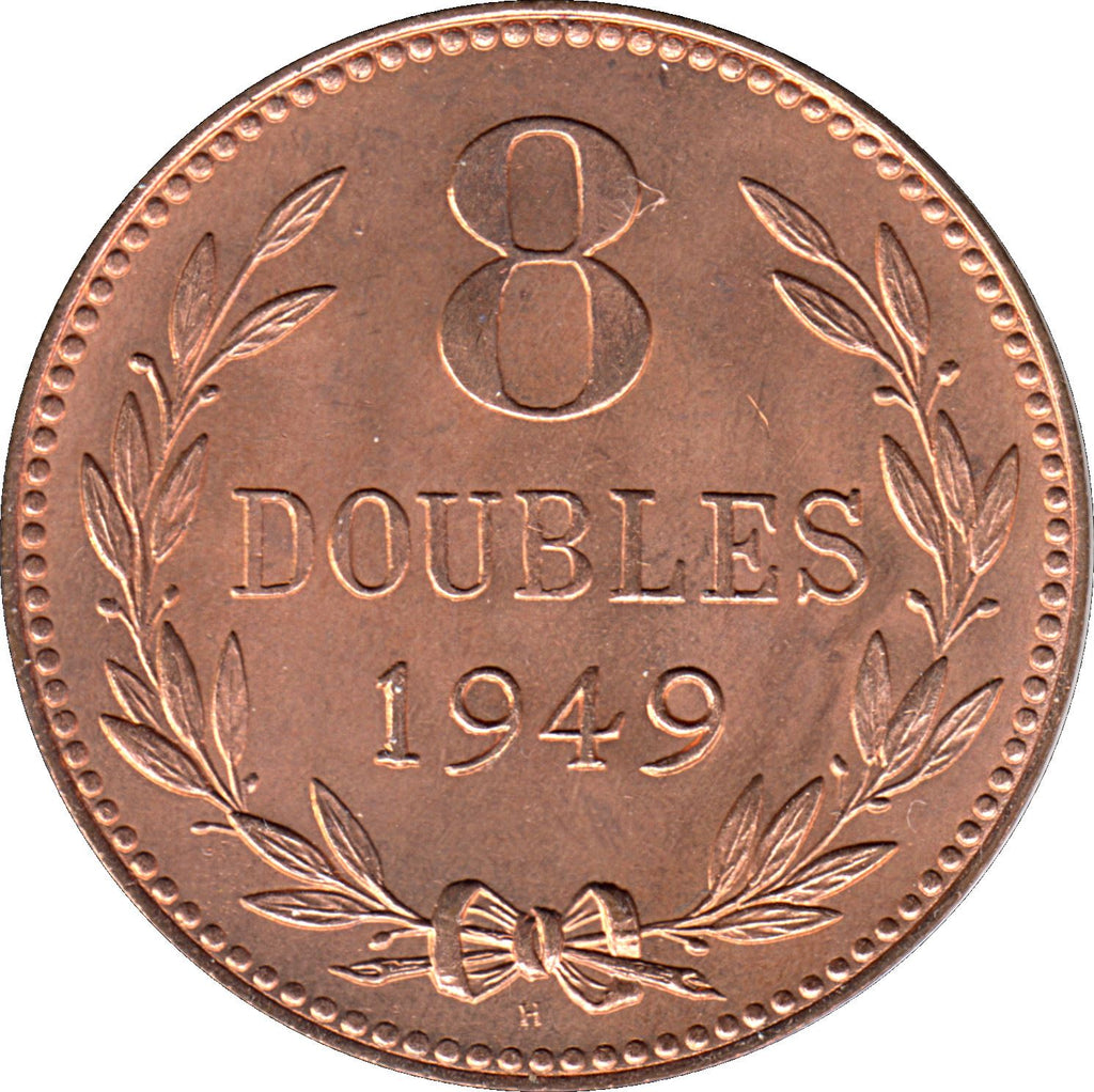 8 Doubles coin from Guernsey (Guernési, Guernesey). The coin was circulated in 1914 - 1949 and will be picked randomly. Various grades from Good to Very fine. A photo is for advertising purposes only. The coin may have scratches, dirt, or damage from oxidation.