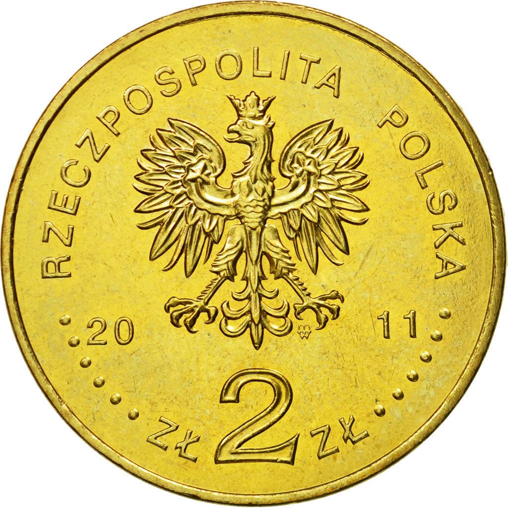 2 Zlotys coin from Poland (Rzeczpospolita Polska, Republic of Poland). The coin was circulated in 2011 and will be picked randomly. Various grades from Good to Very fine. A photo is for advertising purposes only. The coin may have scratches, dirt, or damage from oxidation.
