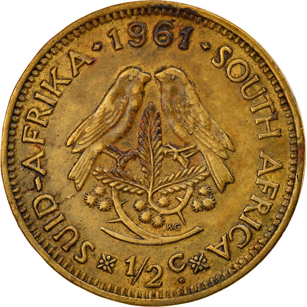 1/2 Cent coin from South Africa (Republic of South Africa, Republiek van Suid-Afrika). The coin was circulated in 1961 - 1964 and will be picked randomly. Various grades from Good to Very fine. A photo is for advertising purposes only. The coin may have scratches, dirt, or damage from oxidation.
