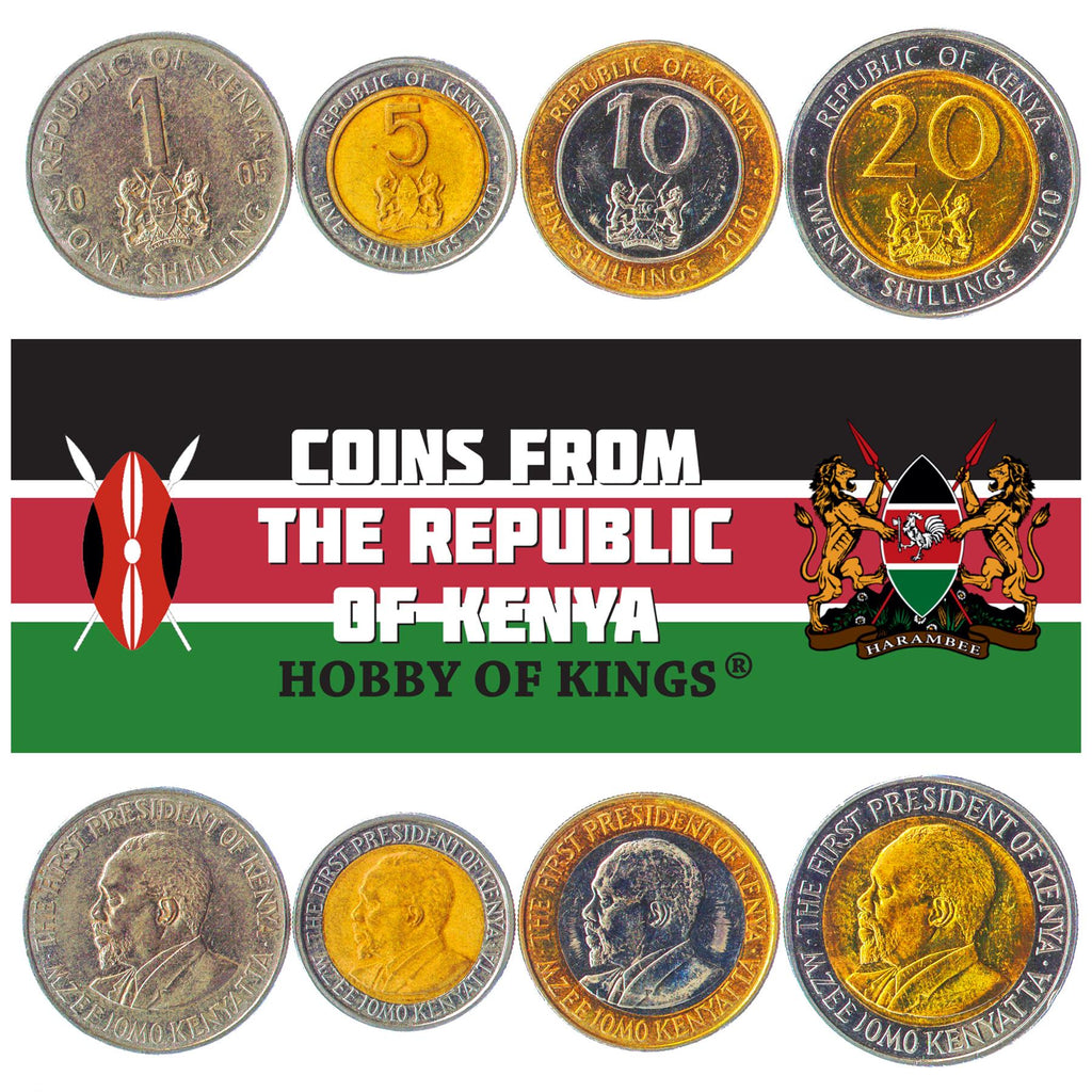 Conjunto de 4 Moedas Quénia 1 5 10 20 Xelim 2005 - 2010