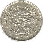 Letras do anverso: SIERRA LEONE 19 64 5 CENTS