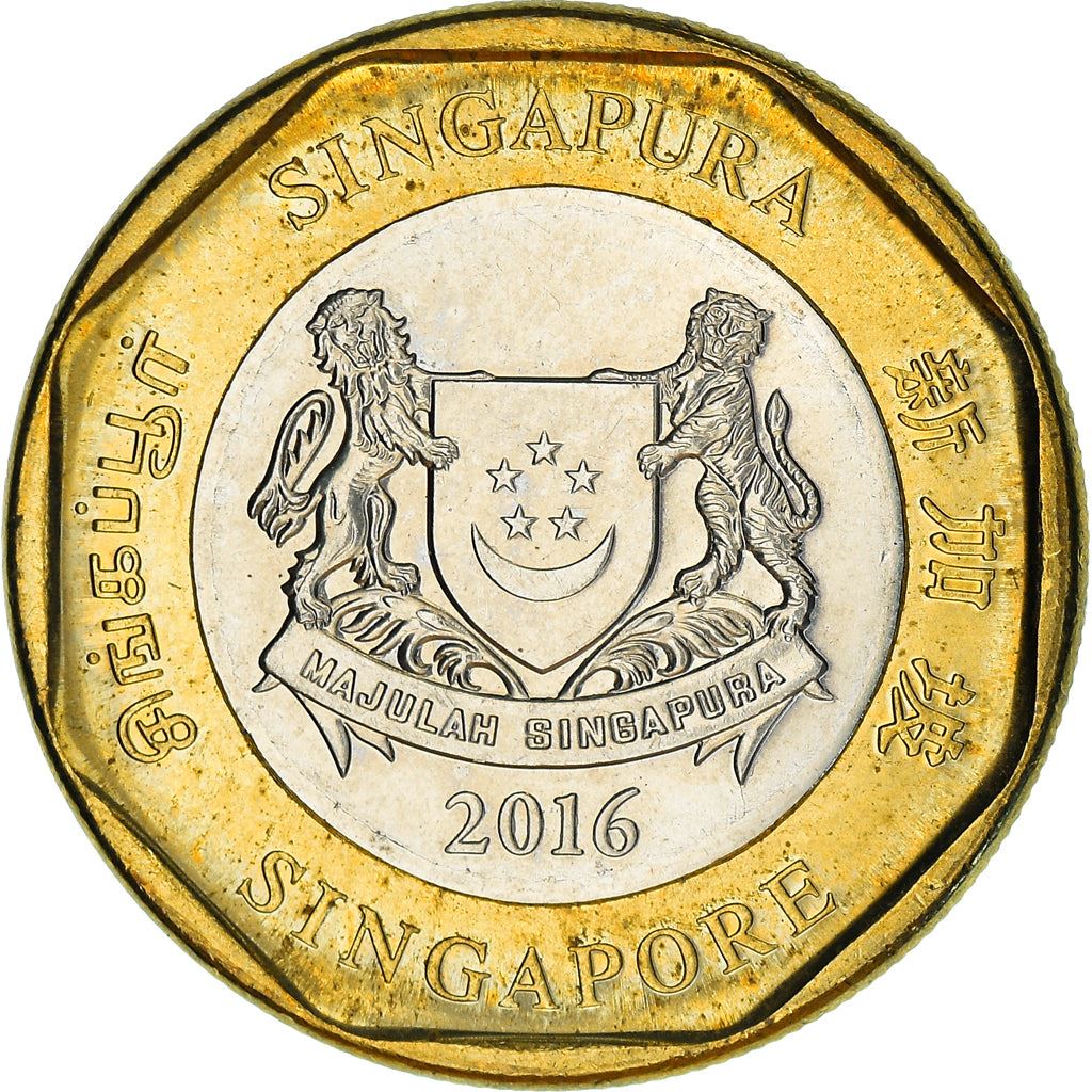 Moeda de 1 Dólar de Singapura (República de Singapura, Republik Singapura). A moeda foi circulada entre 2013 - 2019 e será escolhida aleatoriamente. Várias qualidades desde Bom até Muito fino. A foto é apenas para fins publicitários. A moeda pode apresentar riscos, sujidade ou danos por oxidação.