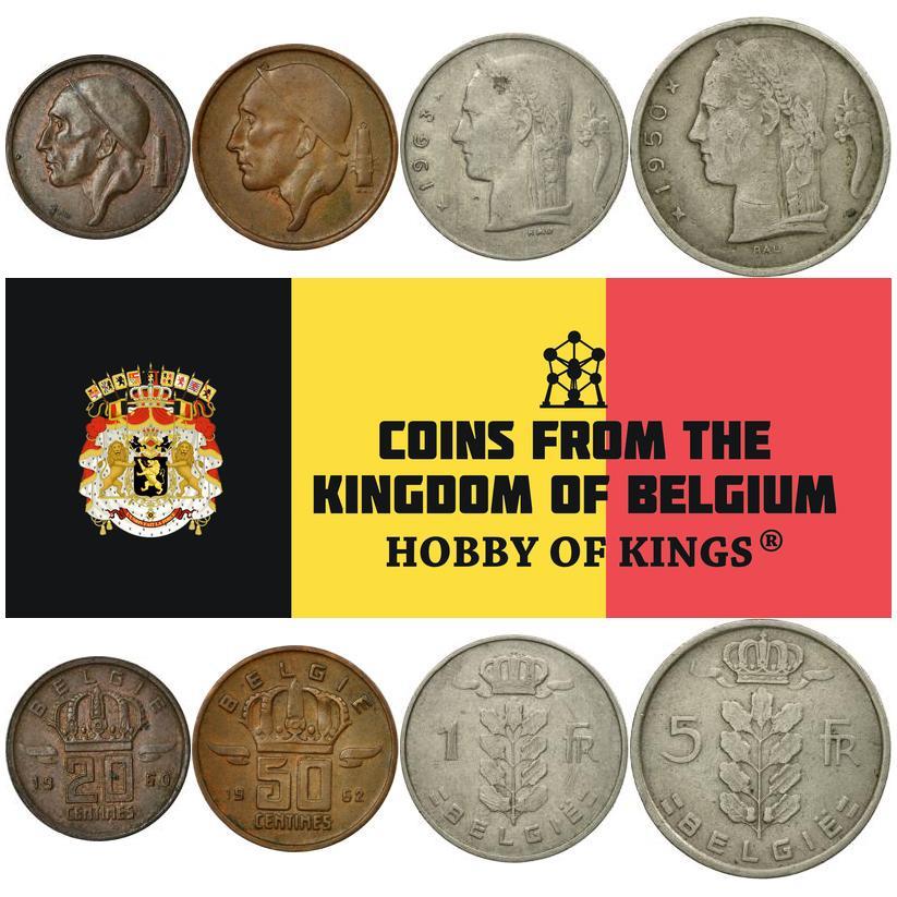 4 coin set made in these countries: Belgium (Kingdom of Belgium), Königreich Belgien.