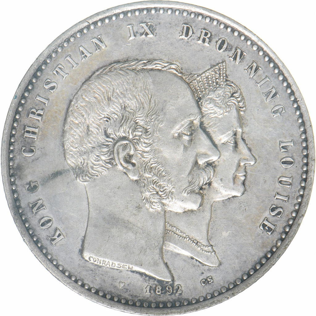 Obverse lettering: KONG CHRISTIAN IX DRONNING LOUISECONRADSEN♥ 1892 CS