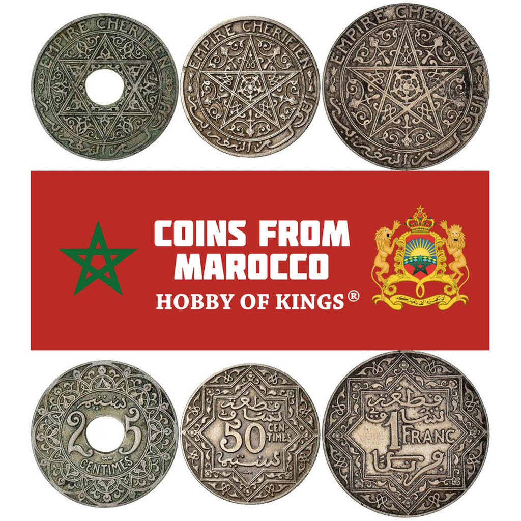 3 coin set made in these countries: Morocco (Tageldit n Lmeɣrib), al-Mamlakah al-Maghribiyah.