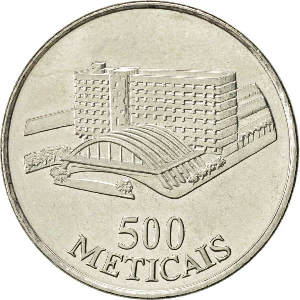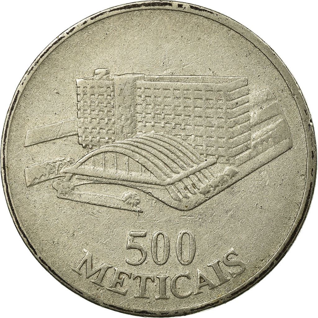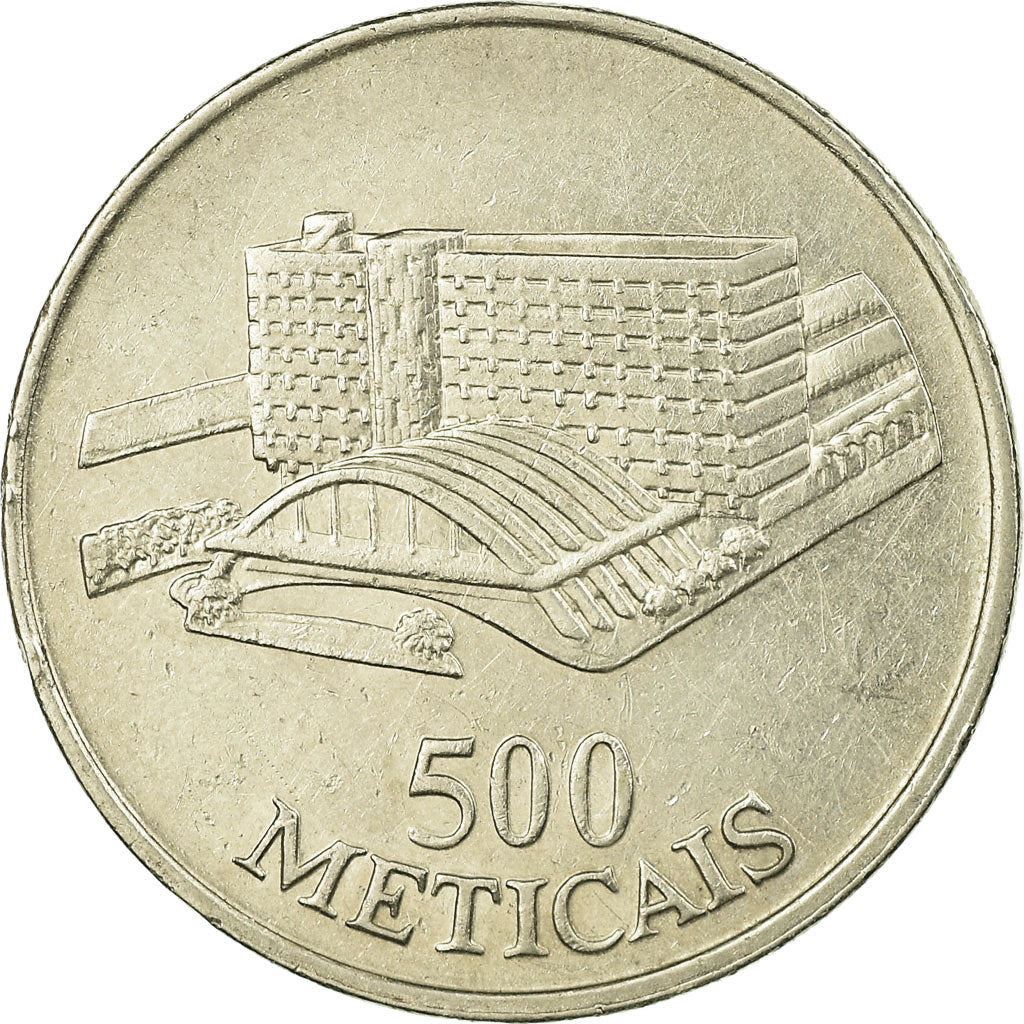500 Meticais coin from Mozambique (Republic of Mozambique, República de Moçambique). The coin was circulated in 1994 and will be picked randomly. Various grades from Good to Very fine. A photo is for advertising purposes only. The coin may have scratches, dirt, or damage from oxidation.