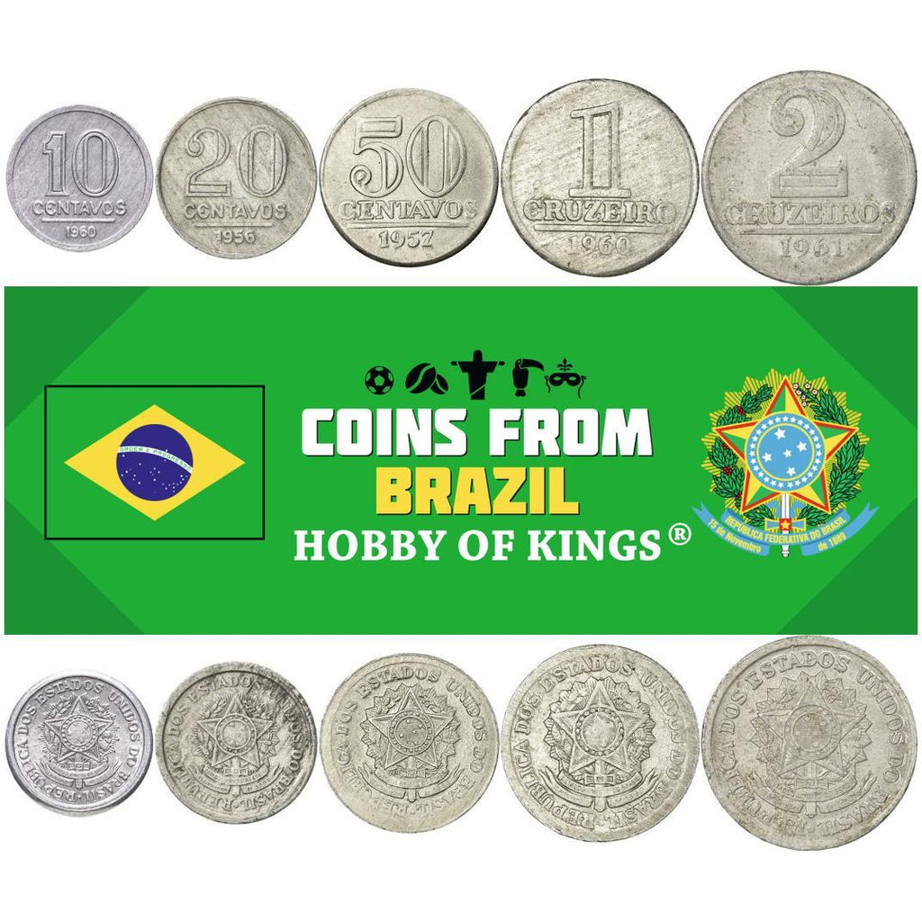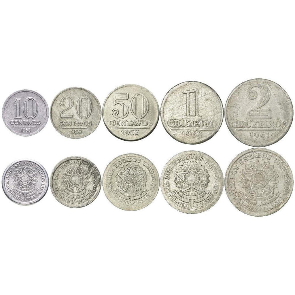 5 coin set made in these countries: Brazil (República Federativa do Brasil), Republic of the United States of Brazil.