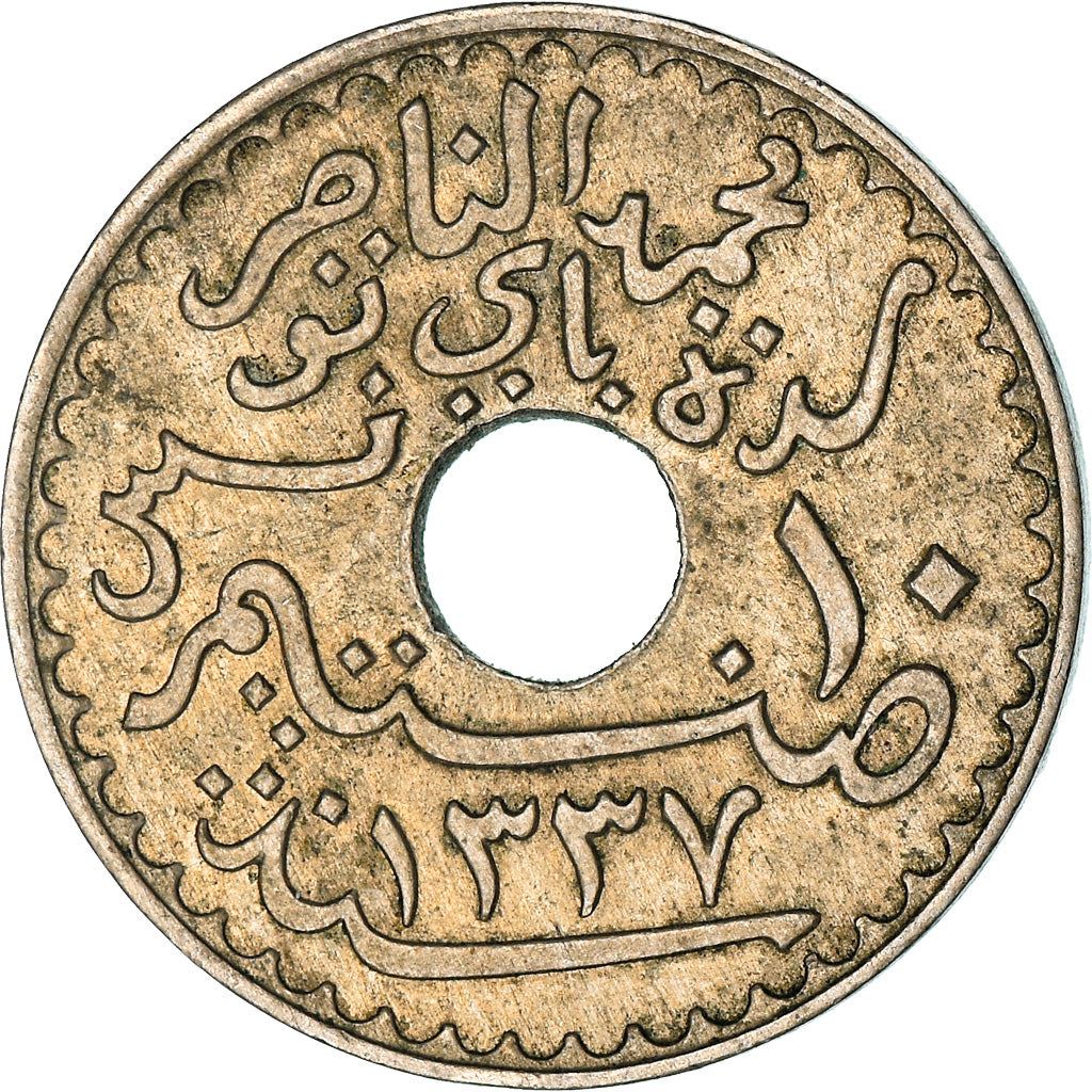 Obverse lettering: محمد الناصر مدة باي تونس ١٠ صنتيم ١٣٣٧ سنة