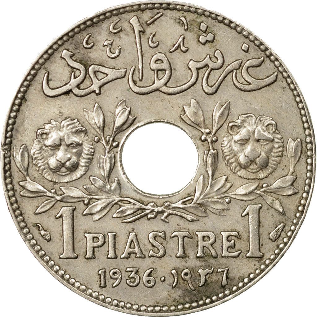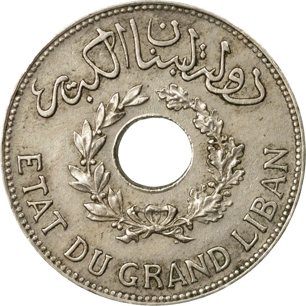 1 Ghirsh / Piastre-mynt från Libanon (الجمهورية اللبنانية, ٱلْجُمْهُورِيَّةُ ٱللُّبْنَانِيَّةُ). Myntet cirkulerade 1925 - 1936 och väljs slumpmässigt. Olika grader från Bra till Mycket fint. Ett foto är endast för reklamändamål. Myntet kan ha repor, smuts eller skador från oxidation.