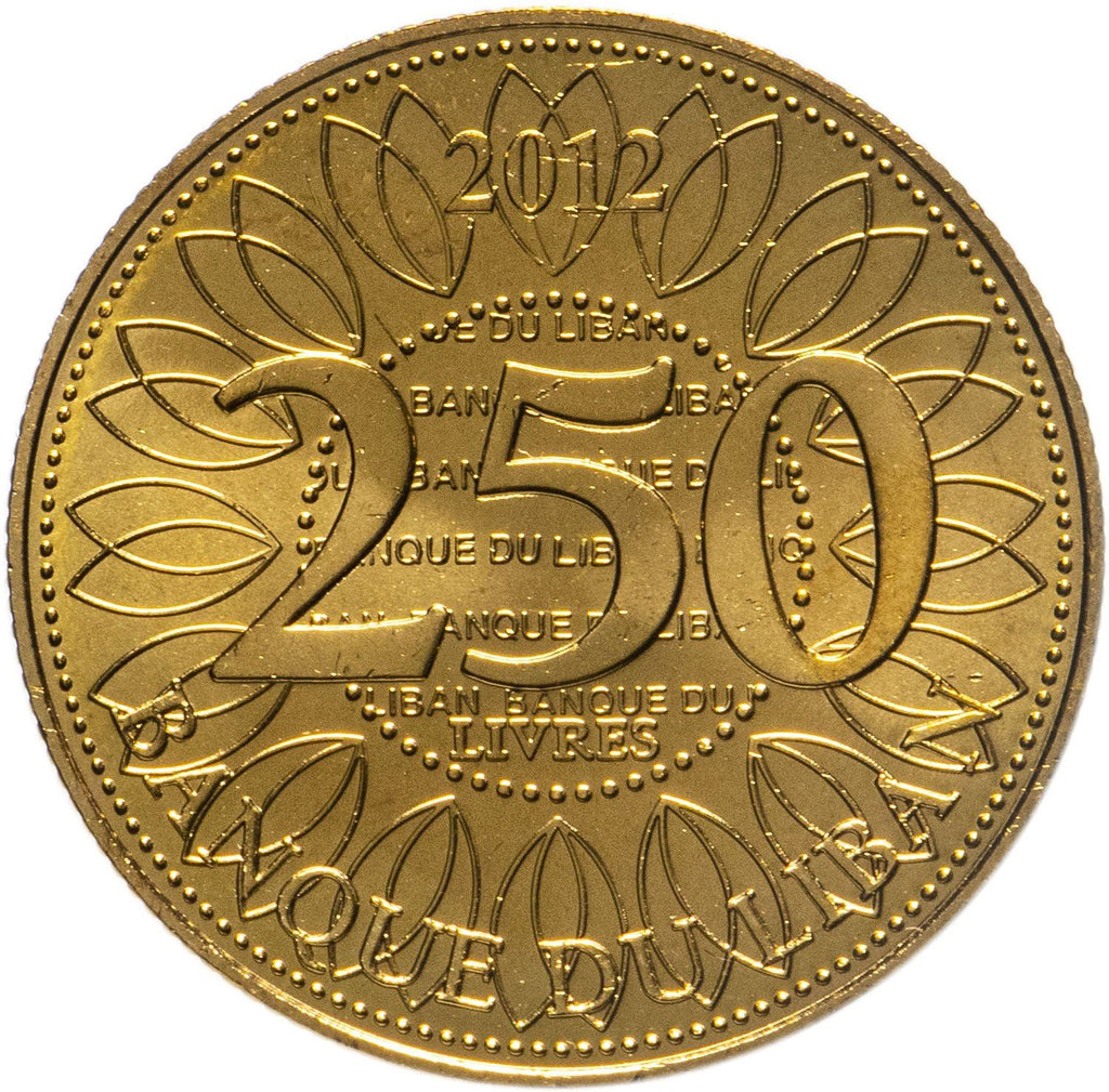Framsida text: مصرف لبنان ٢٥٠ ليرة ۲۰۱۲