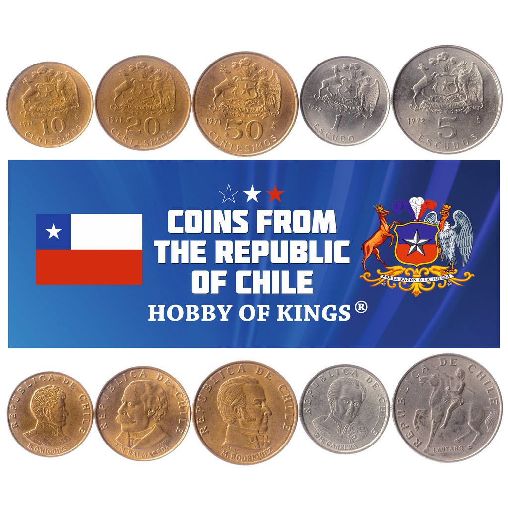 5-myntsats tillverkad i dessa länder: Chile (República de Chile), Republiken Chile.