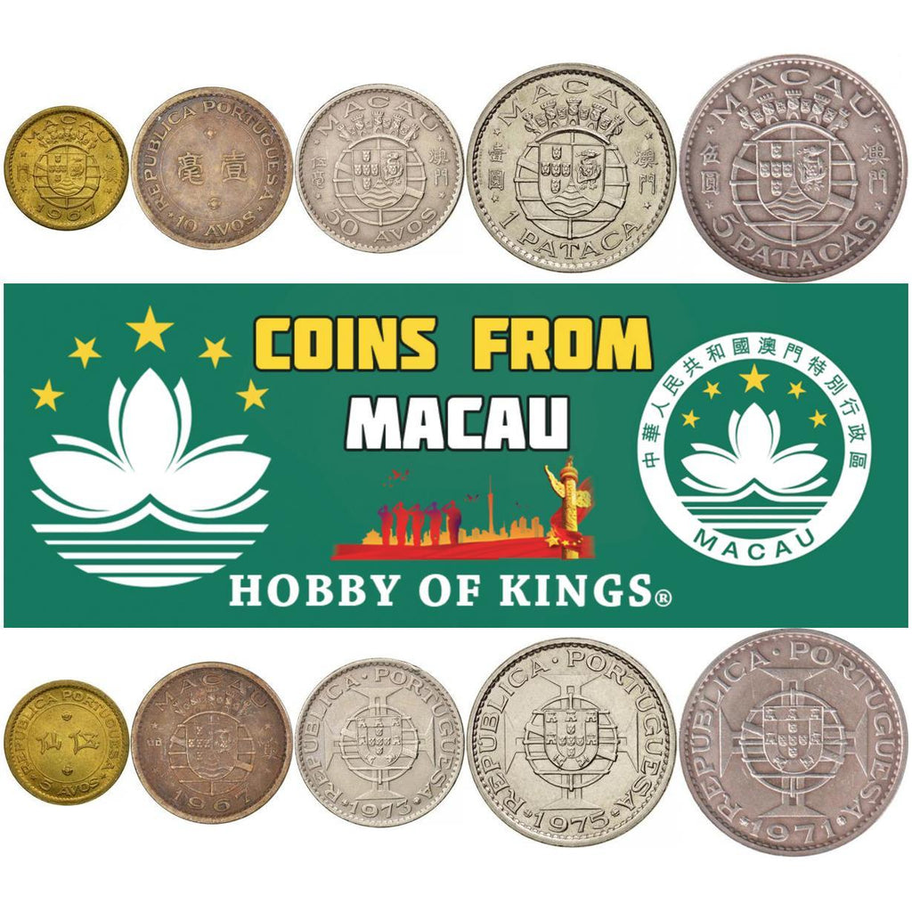 Valörer: 5 avos, 10 Avos, 50 avos, 1 pataca, 5 patacas